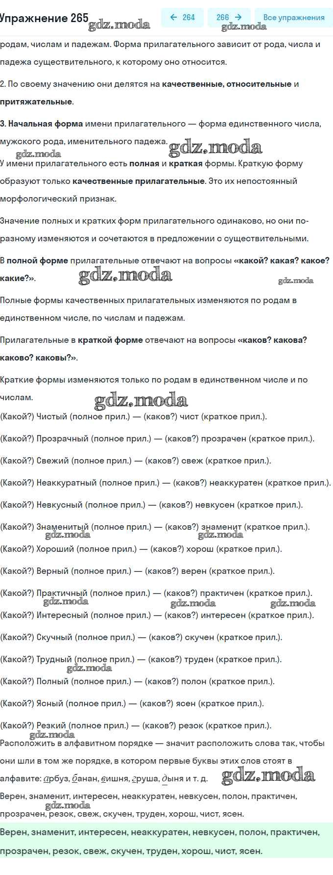ОТВЕТ на задание № 265 Рабочая тетрадь по Русскому языку 5 класс Янченко