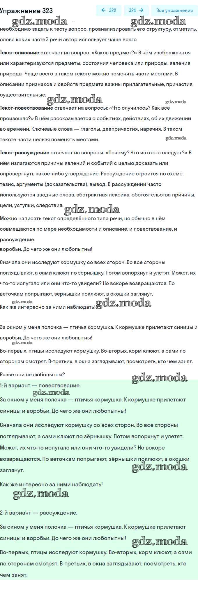 ОТВЕТ на задание № 323 Рабочая тетрадь по Русскому языку 5 класс Янченко