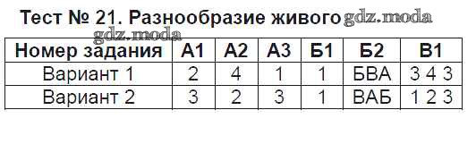 ОТВЕТ на задание № Тест №21. Разнообразие живого Тесты по Естествознанию 5 класс Воронина УМК