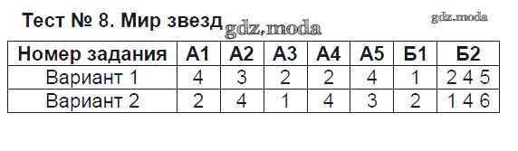 ГДЗ решение к заданию № Тест №8. Мир звезд Естествознание 5 класс Тесты Воронина Г.А. (к уч. Плешакова) Экзамен 2015 ФГОС бесплатно на гдз.мода!