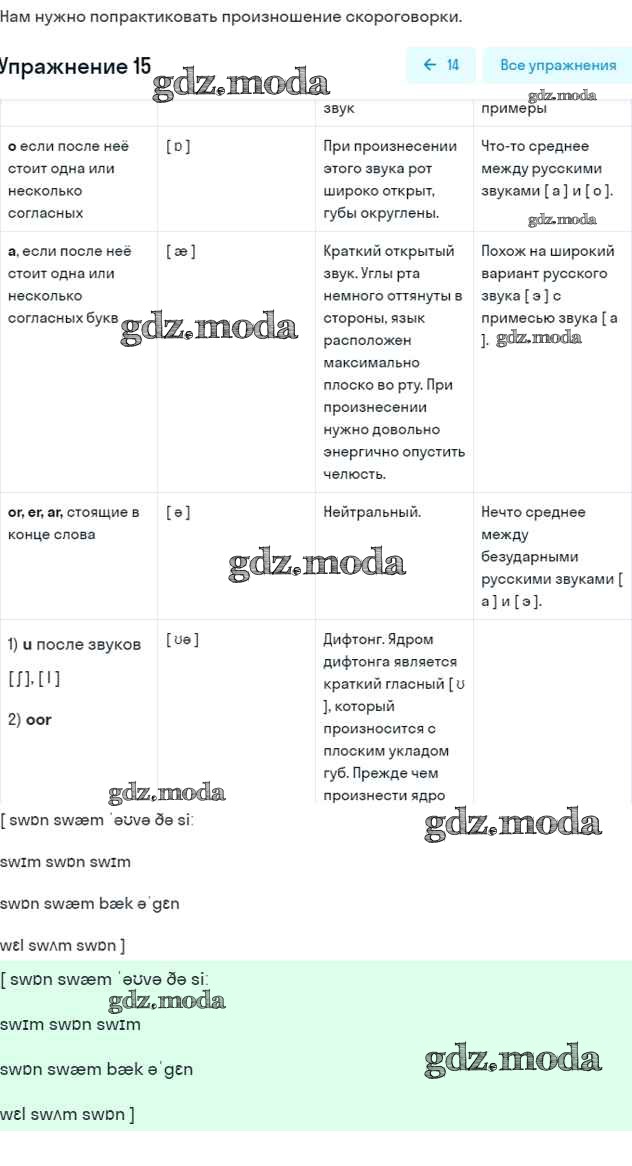 ГДЗ решение к заданию № 15 Английский язык 6 класс рабочая тетрадь Афанасьева (Углубленный курс) Просвещение 2022 Углубленный уровень ФГОС бесплатно на гдз.мода!