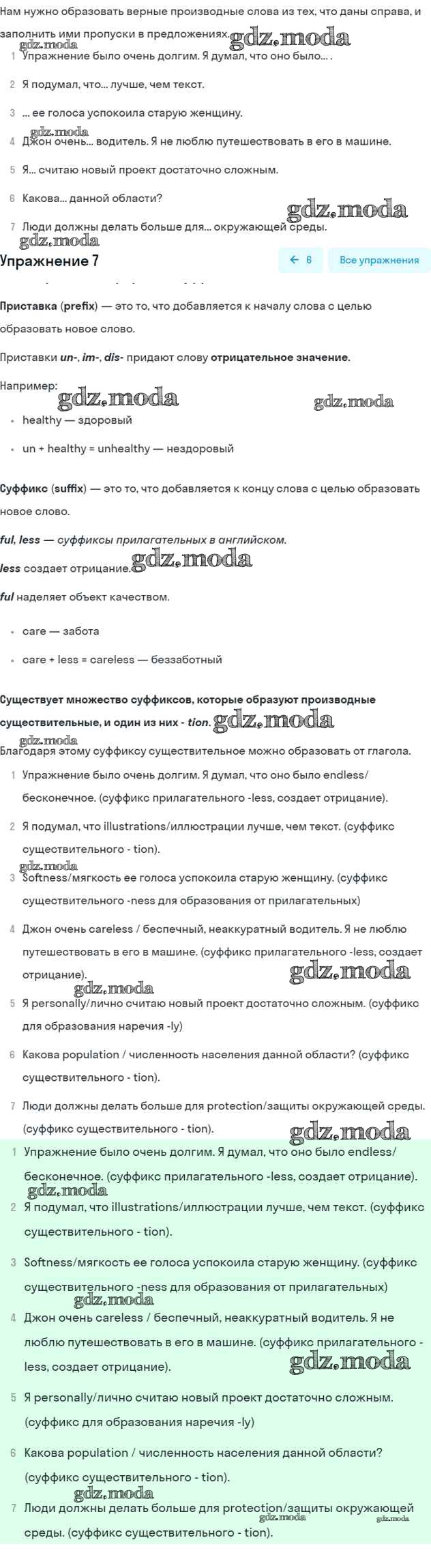 ГДЗ решение к заданию № 7 Английский язык 6 класс рабочая тетрадь Афанасьева (Углубленный курс) Просвещение 2022 Углубленный уровень ФГОС бесплатно на гдз.мода!