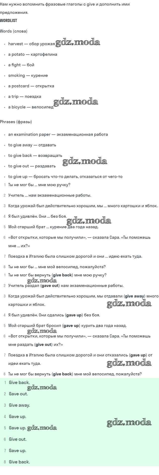 ГДЗ решение к заданию № 8 Английский язык 6 класс рабочая тетрадь Афанасьева (Углубленный курс) Просвещение 2022 Углубленный уровень ФГОС бесплатно на гдз.мода!