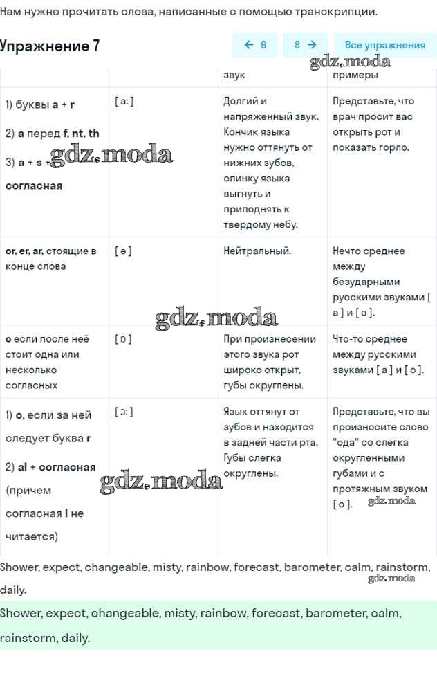 ГДЗ решение к заданию № 7 Английский язык 6 класс Афанасьева (Углубленный курс) Просвещение 2016 Углубленный уровень ФГОС бесплатно на гдз.мода!
