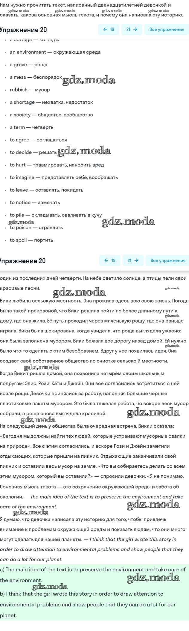 ГДЗ решение к заданию № 20 Английский язык 6 класс Афанасьева (Углубленный курс) Просвещение 2016 Углубленный уровень ФГОС бесплатно на гдз.мода!
