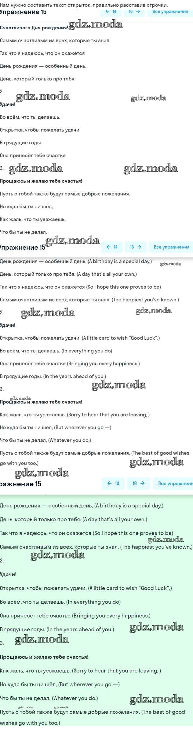 ГДЗ решение к заданию № 15 Английский язык 6 класс Афанасьева (Углубленный курс) Просвещение 2016 Углубленный уровень ФГОС бесплатно на гдз.мода!