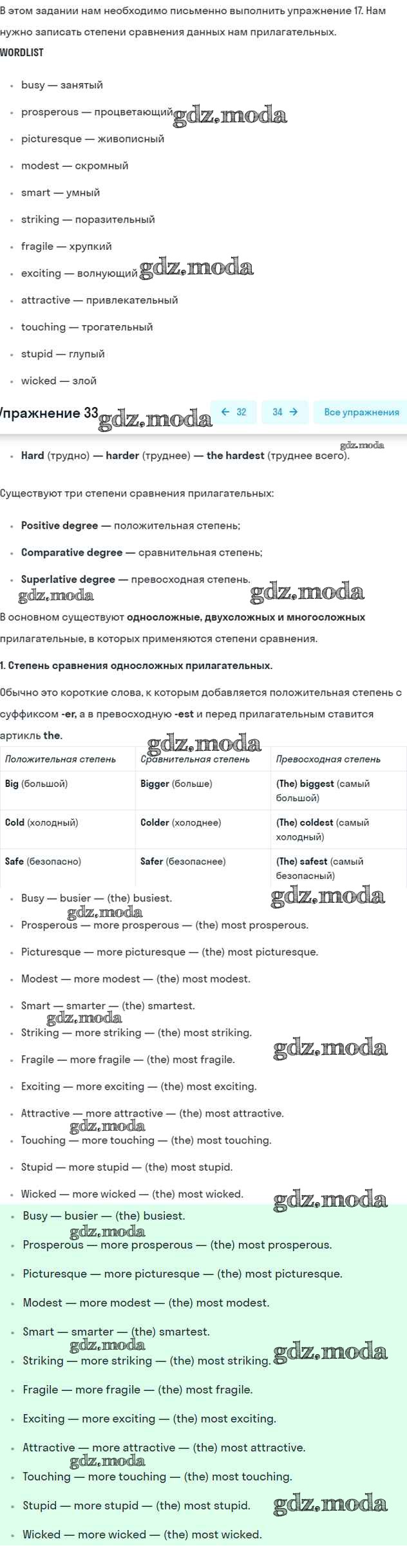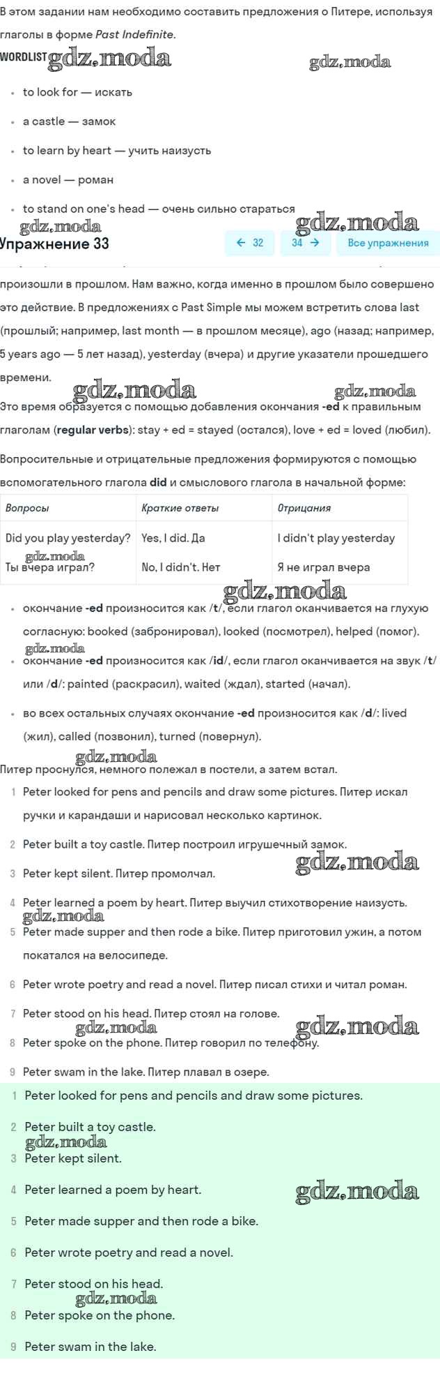 ГДЗ решение к заданию № 33 Английский язык 6 класс Афанасьева (Углубленный курс) Просвещение 2016 Углубленный уровень ФГОС бесплатно на гдз.мода!