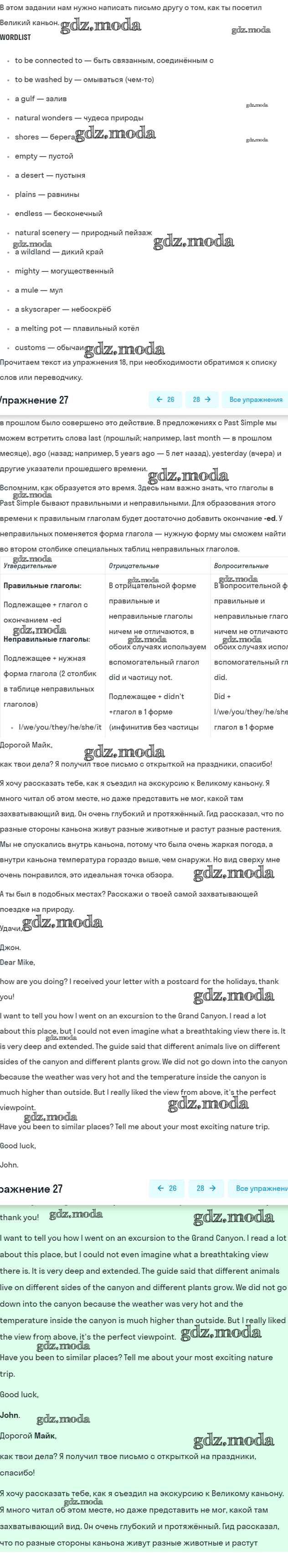 ГДЗ решение к заданию № 27 Английский язык 6 класс Афанасьева (Углубленный курс) Просвещение 2016 Углубленный уровень ФГОС бесплатно на гдз.мода!
