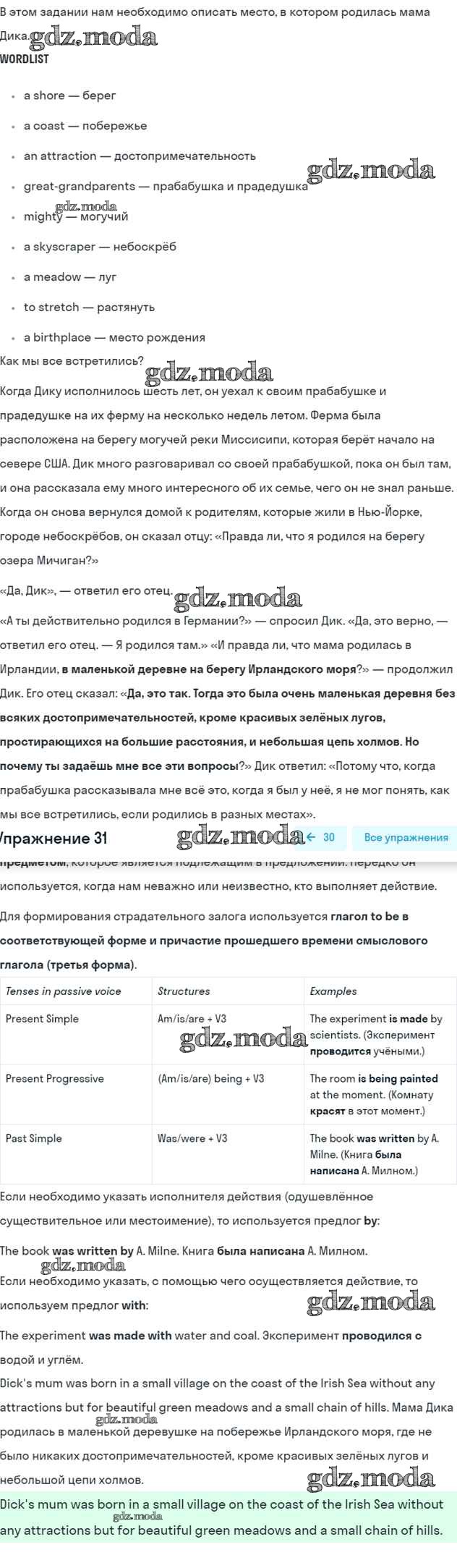 ГДЗ решение к заданию № 31 Английский язык 6 класс Афанасьева (Углубленный курс) Просвещение 2016 Углубленный уровень ФГОС бесплатно на гдз.мода!