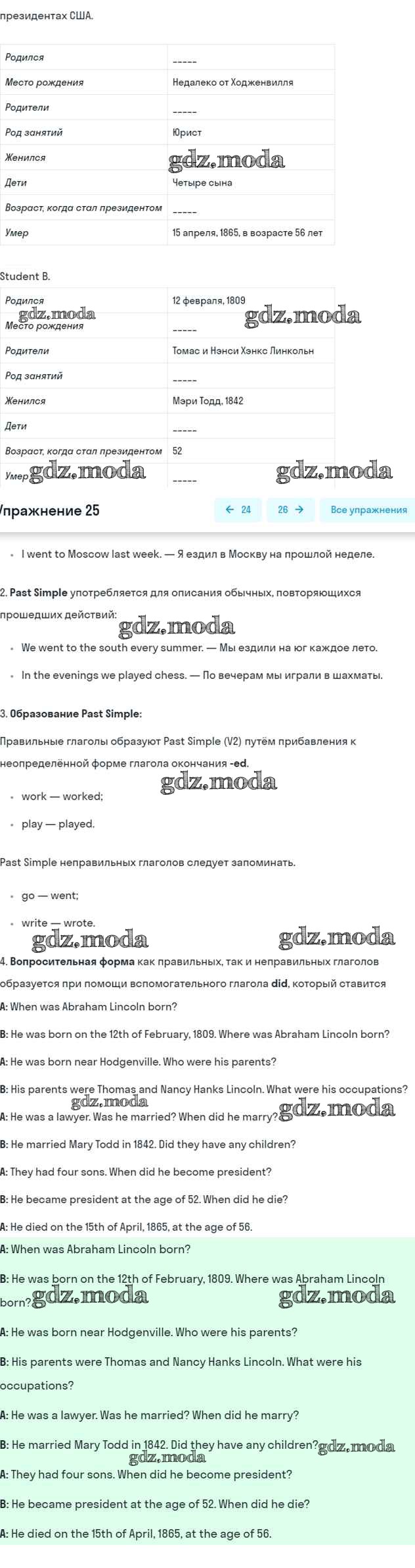 ГДЗ решение к заданию № 25 Английский язык 6 класс Афанасьева (Углубленный курс) Просвещение 2016 Углубленный уровень ФГОС бесплатно на гдз.мода!