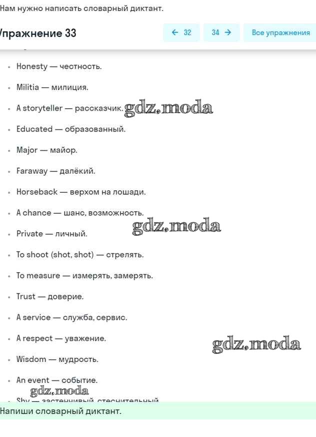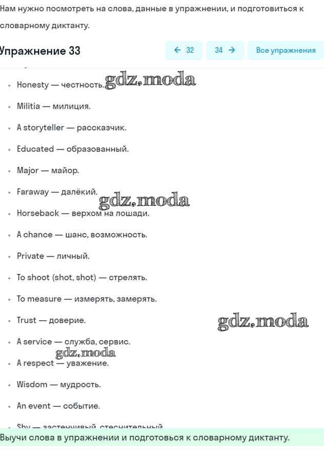 ГДЗ решение к заданию № 33 Английский язык 6 класс Афанасьева (Углубленный курс) Просвещение 2016 Углубленный уровень ФГОС бесплатно на гдз.мода!