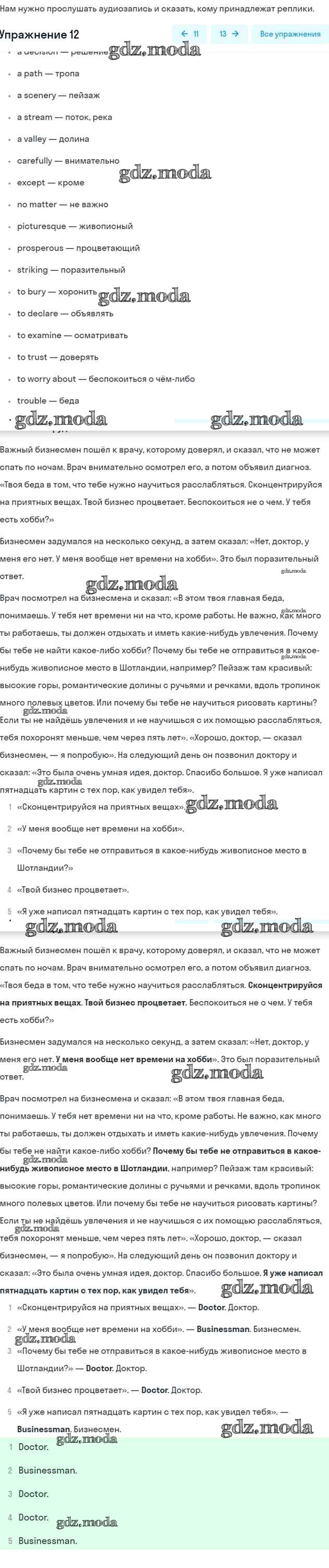 ГДЗ решение к заданию № 12 Английский язык 6 класс Афанасьева (Углубленный курс) Просвещение 2016 Углубленный уровень ФГОС бесплатно на гдз.мода!