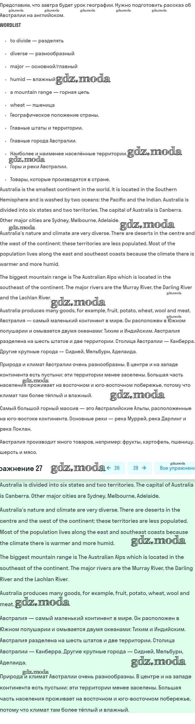 ГДЗ решение к заданию № 27 Английский язык 6 класс Афанасьева (Углубленный курс) Просвещение 2016 Углубленный уровень ФГОС бесплатно на гдз.мода!