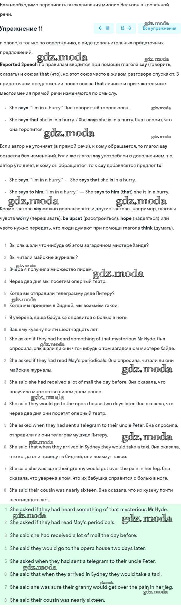 ГДЗ решение к заданию № 11 Английский язык 6 класс Афанасьева (Углубленный курс) Просвещение 2016 Углубленный уровень ФГОС бесплатно на гдз.мода!