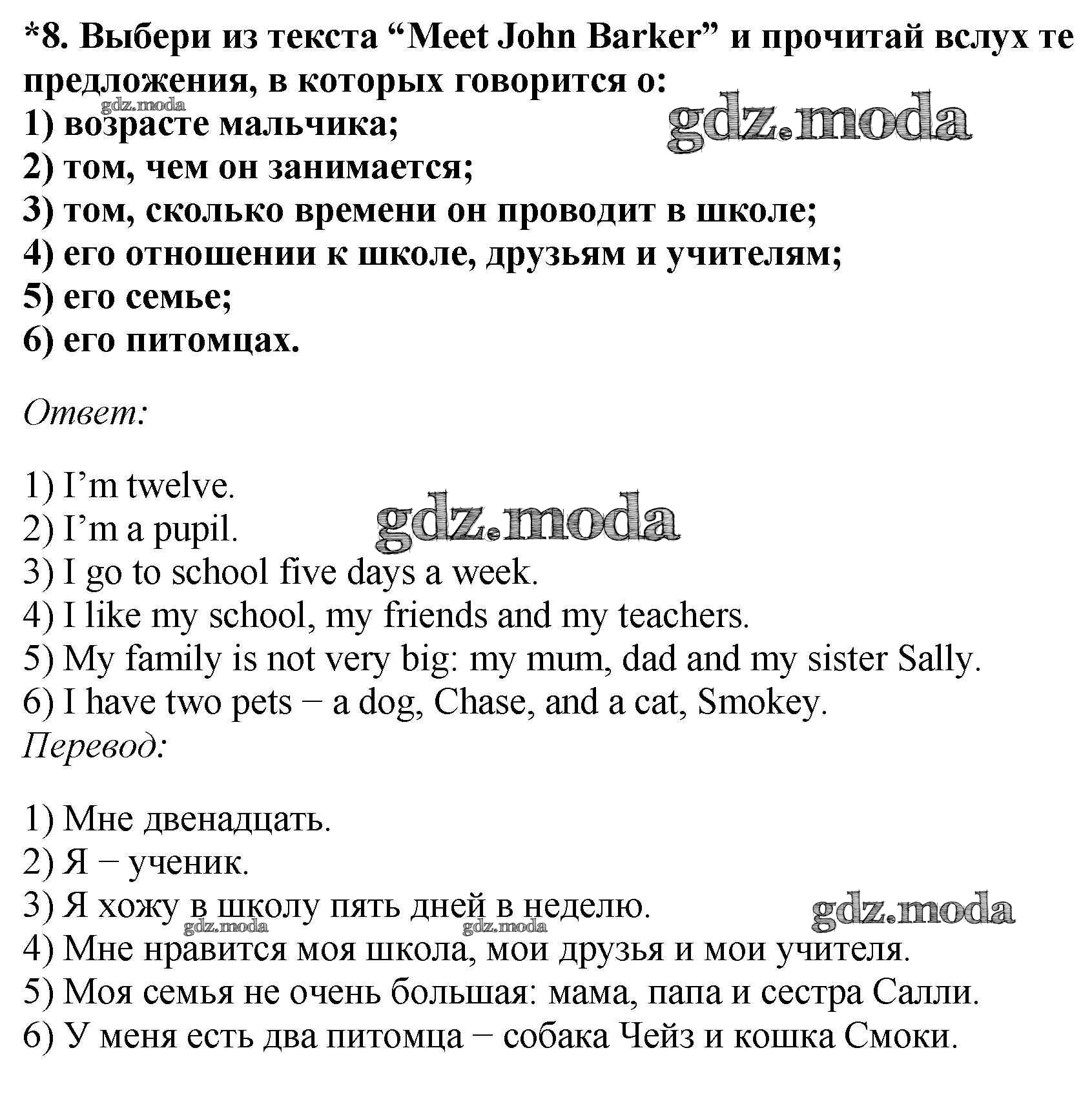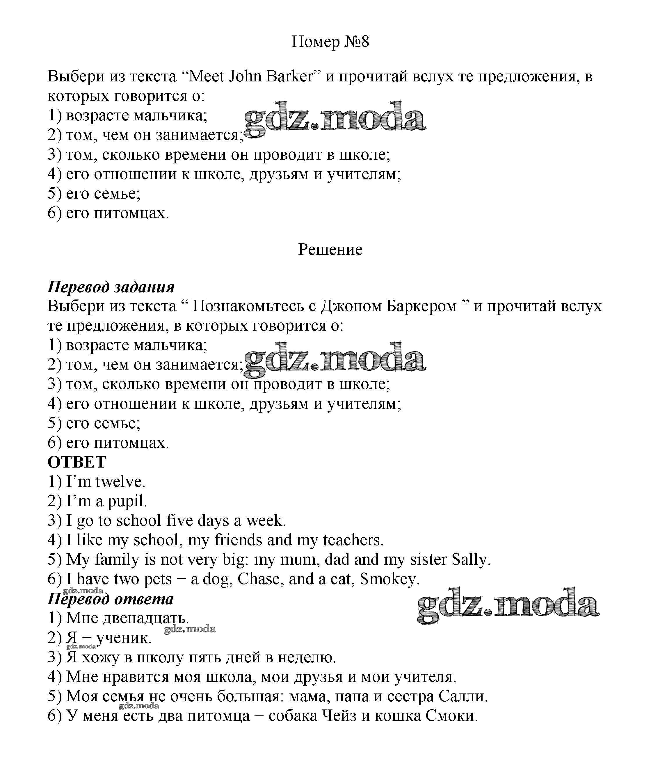 ОТВЕТ на задание № 8 Учебник по Английскому языку 6 класс Афанасьева Новый курс