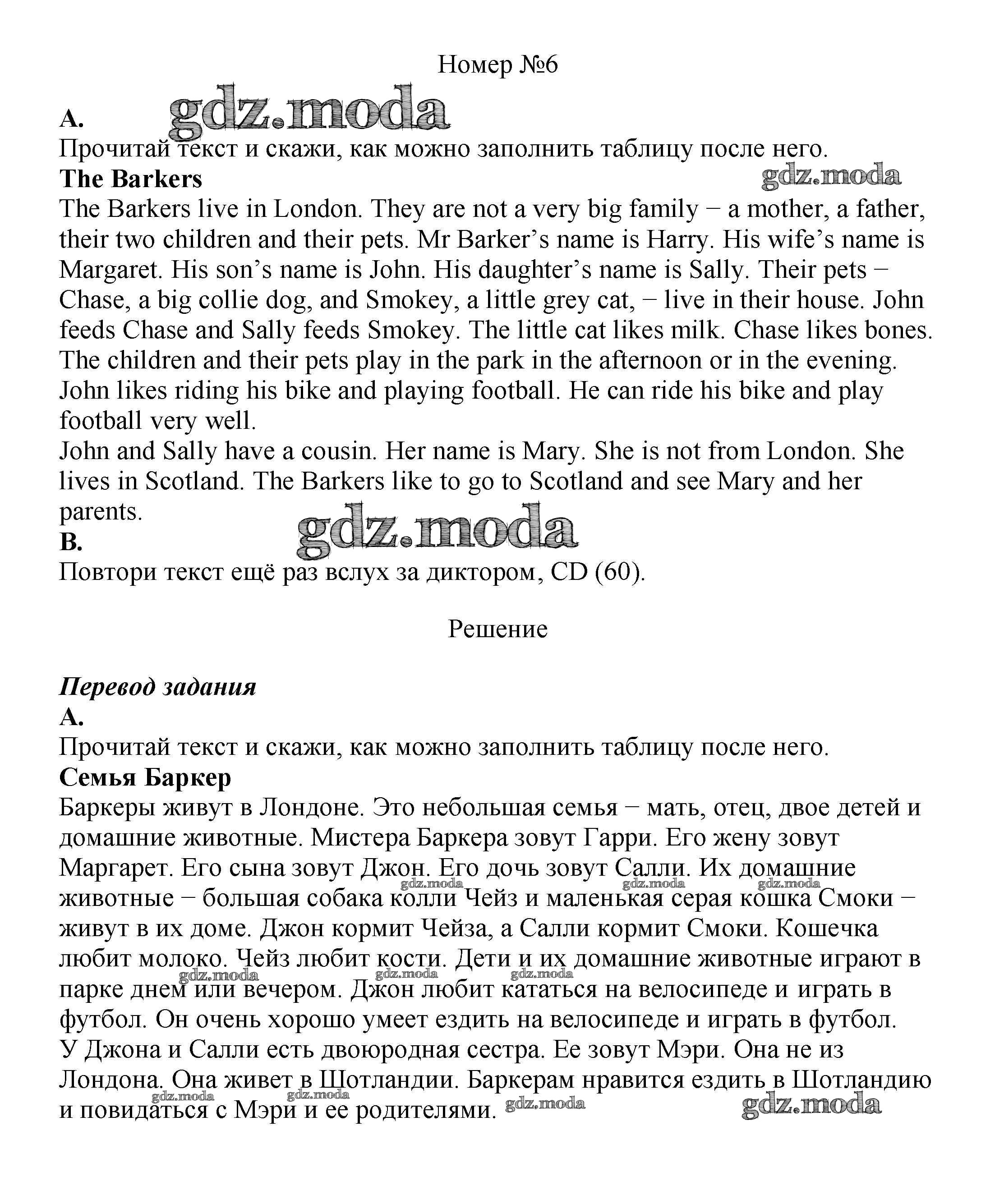 ОТВЕТ на задание № 6 Учебник по Английскому языку 6 класс Афанасьева Новый курс
