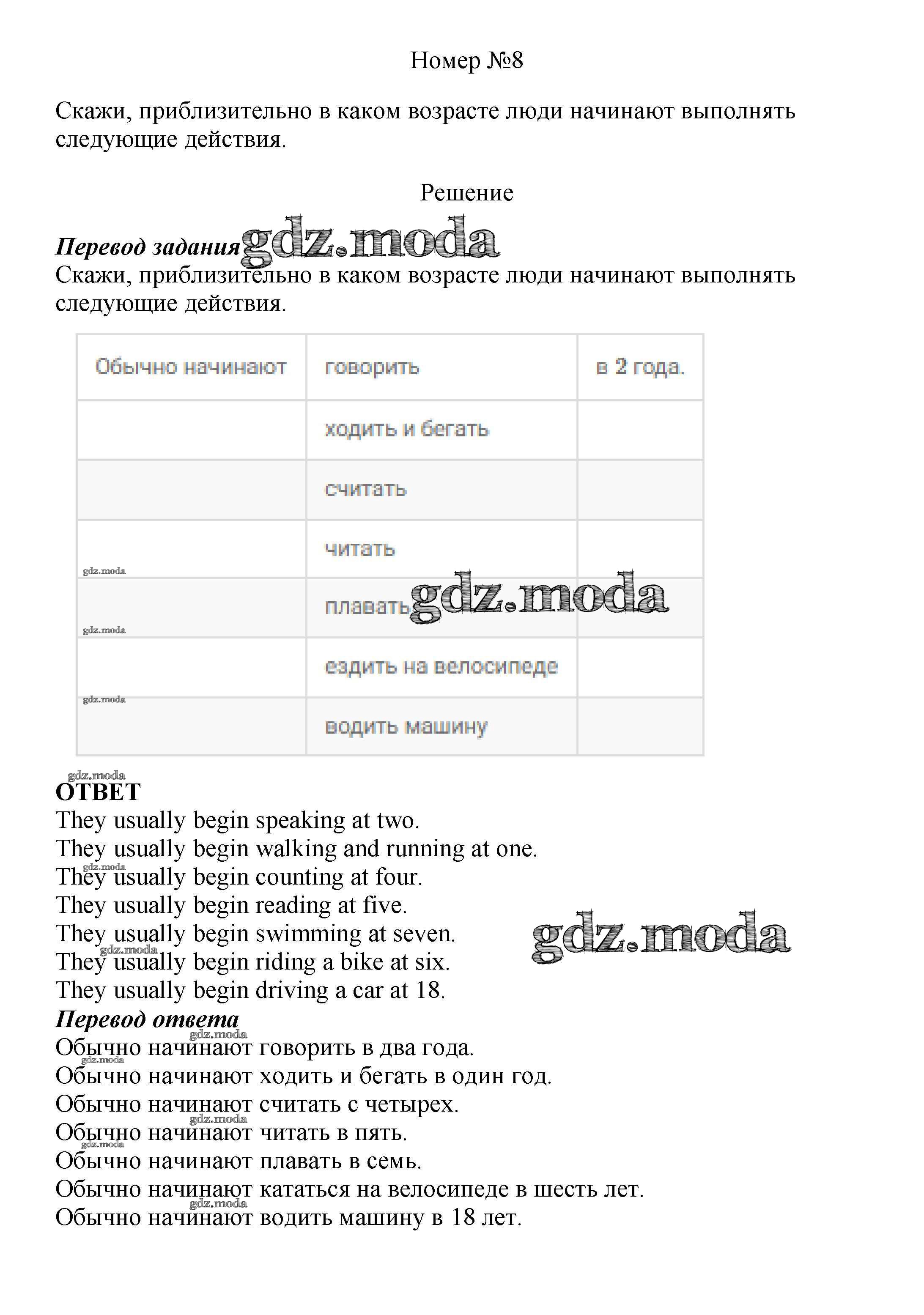 ОТВЕТ на задание № 8 Учебник по Английскому языку 6 класс Афанасьева Новый курс