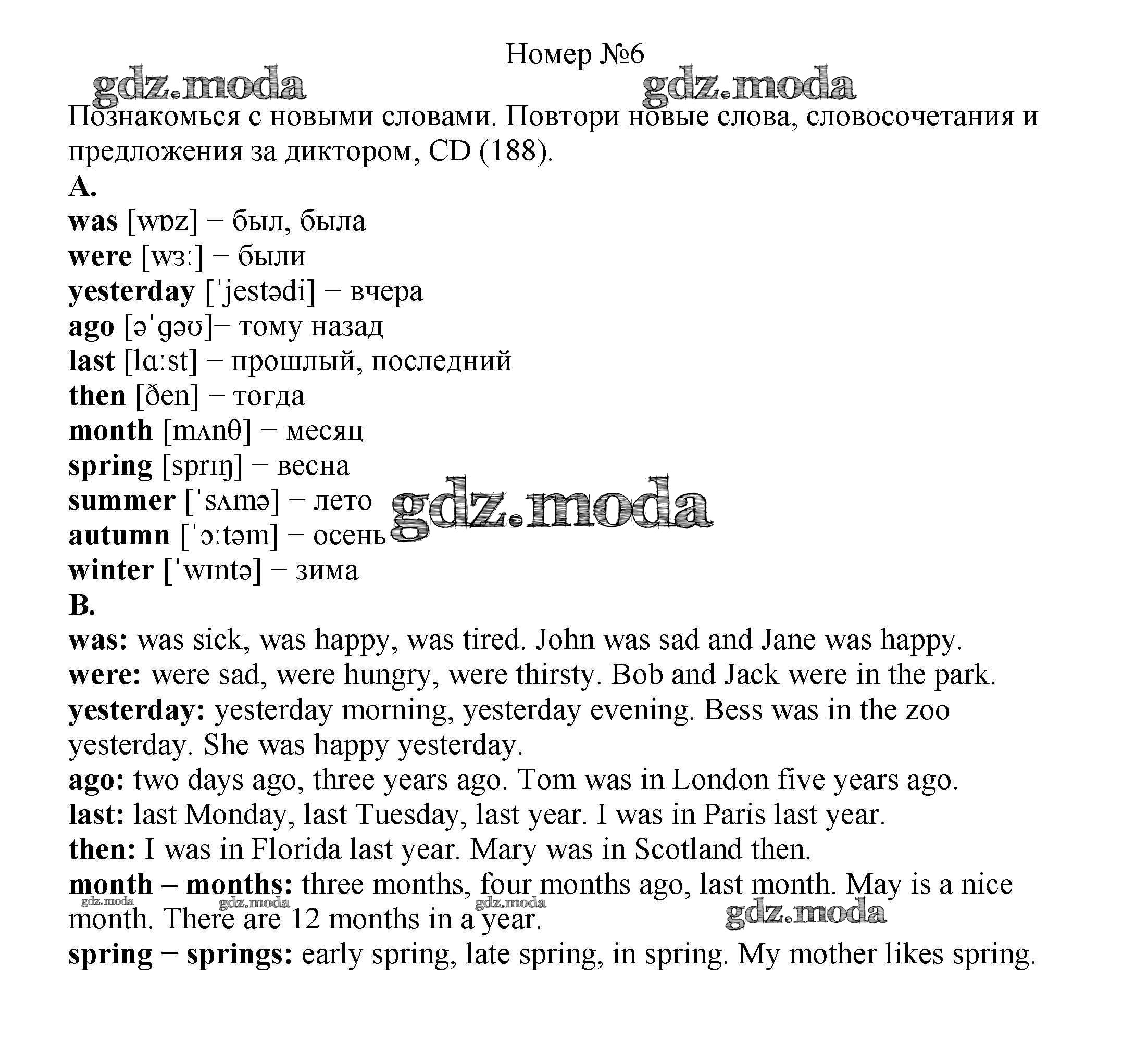 ОТВЕТ на задание № 6 Учебник по Английскому языку 6 класс Афанасьева Новый курс