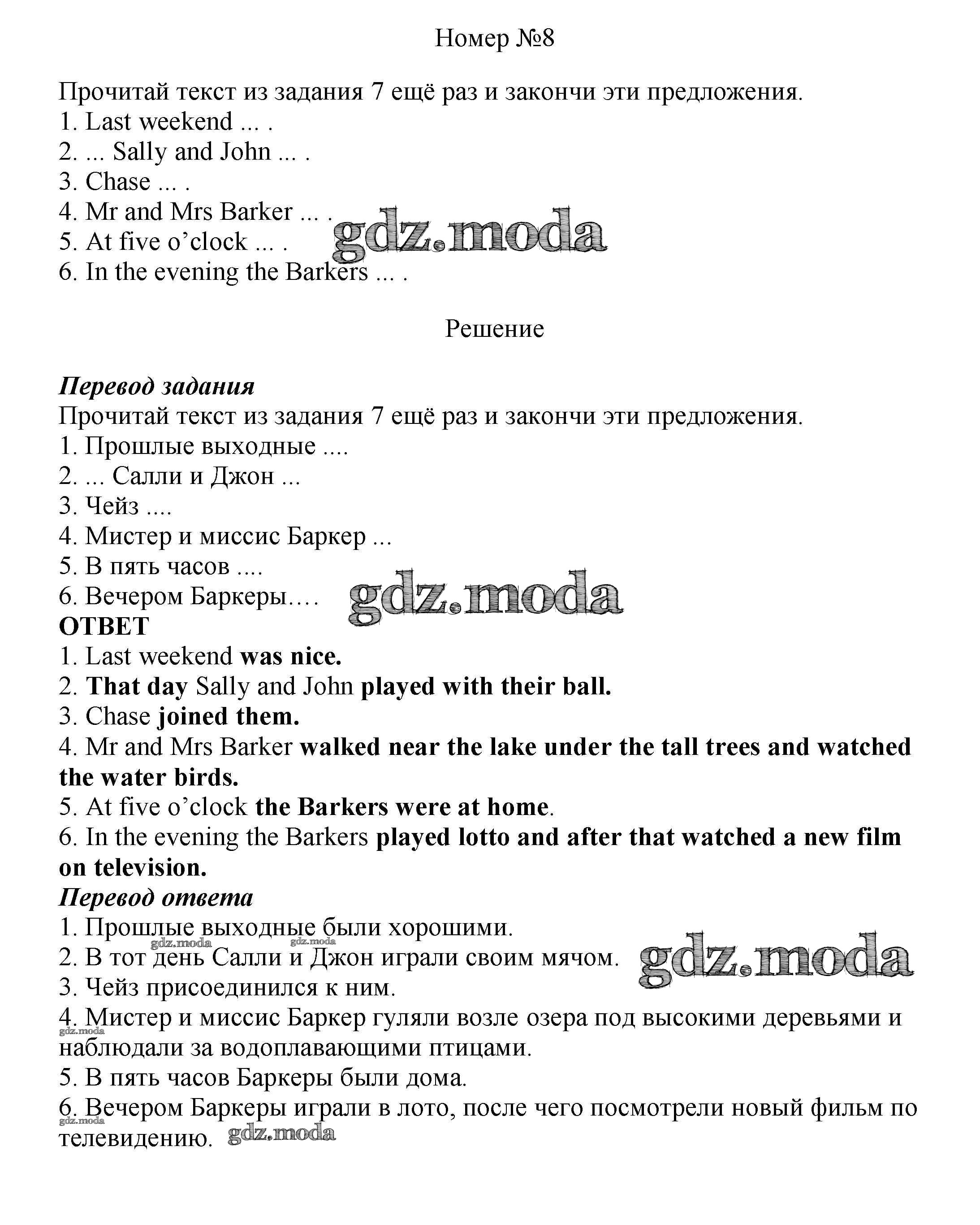 ОТВЕТ на задание № 8 Учебник по Английскому языку 6 класс Афанасьева Новый курс