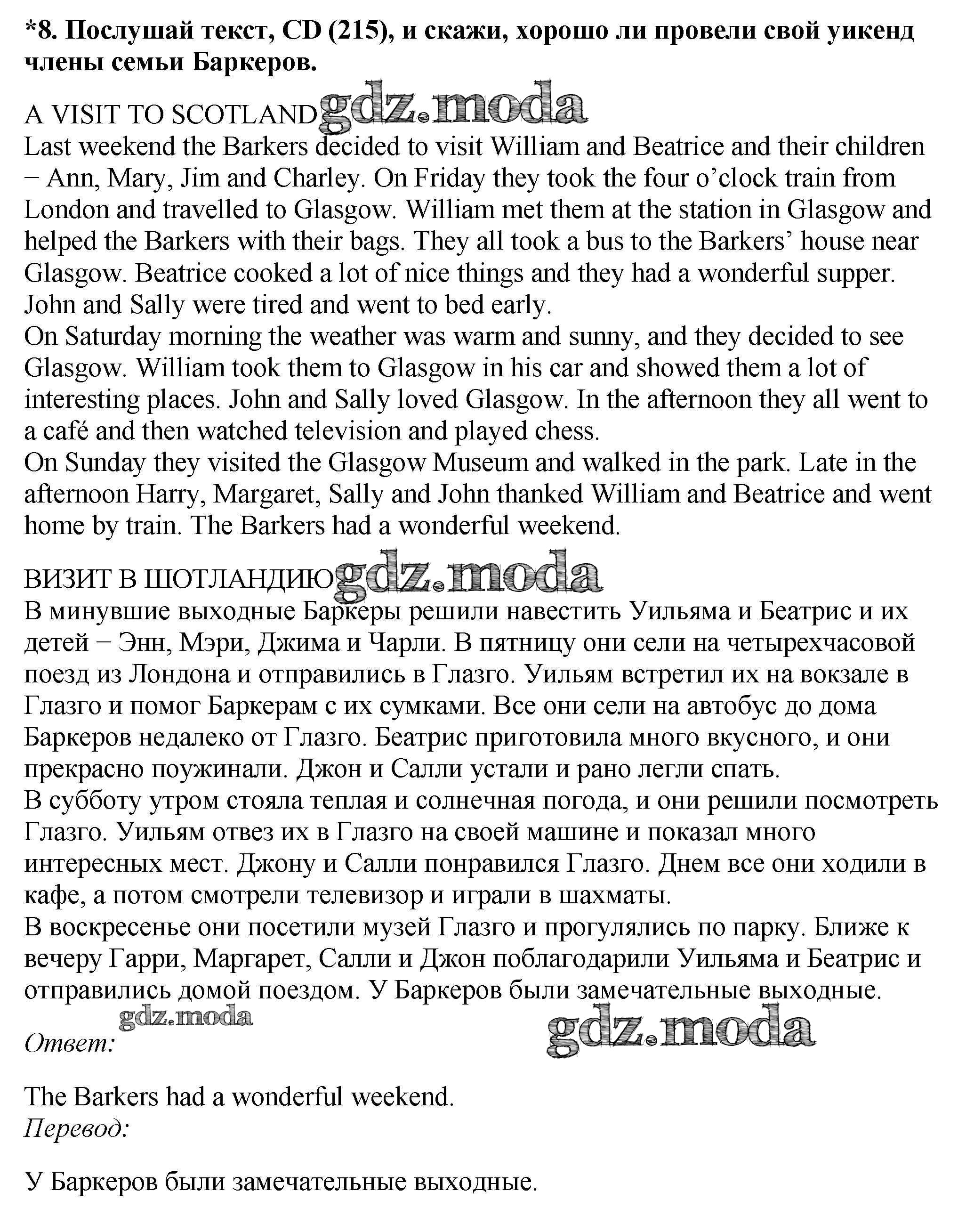 ОТВЕТ на задание № 8 Учебник по Английскому языку 6 класс Афанасьева Новый курс