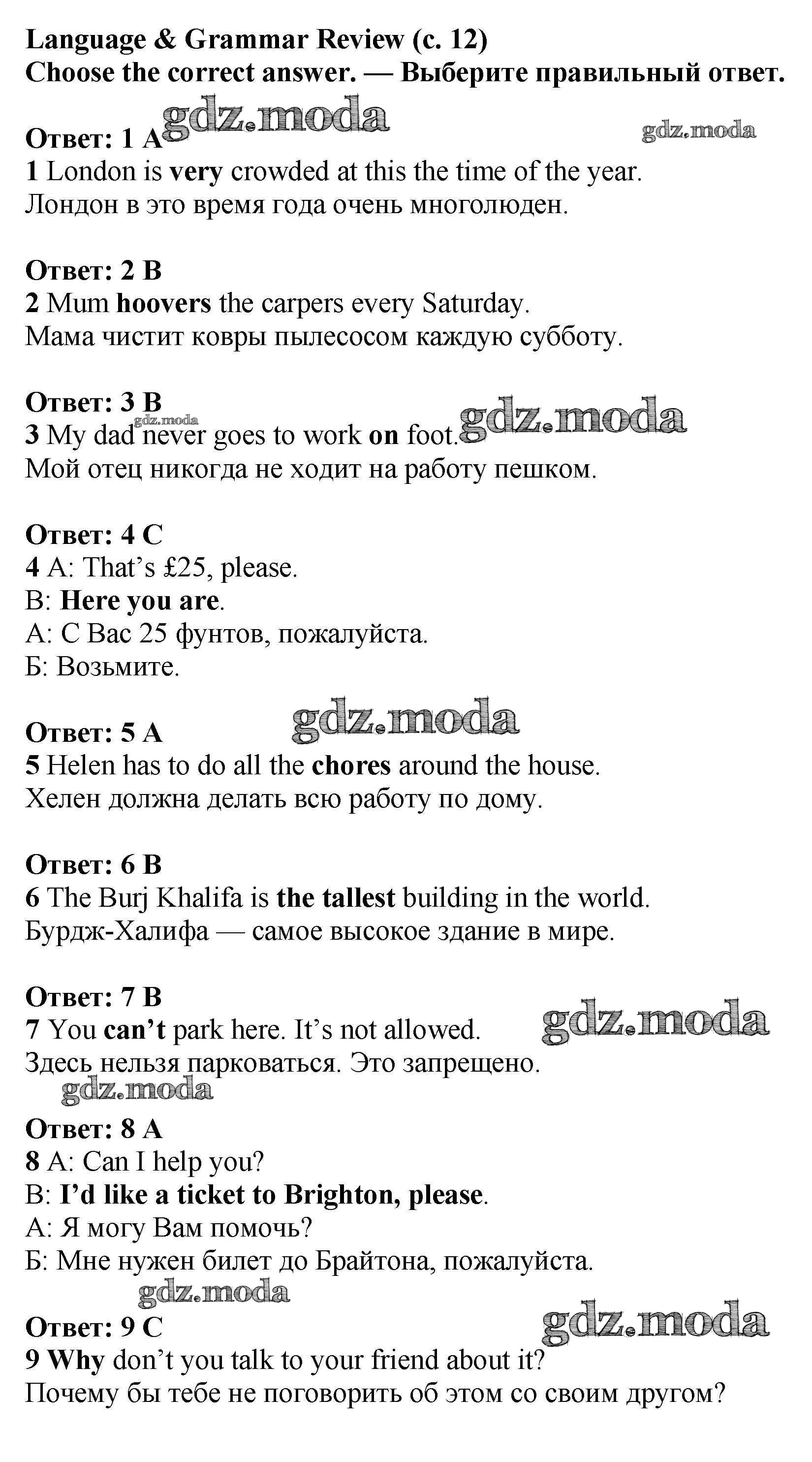 ГДЗ решение к заданию № 12 Английский язык 6 класс рабочая тетрадь Баранова Просвещение 2020 Углубленный уровень ФГОС бесплатно на гдз.мода!