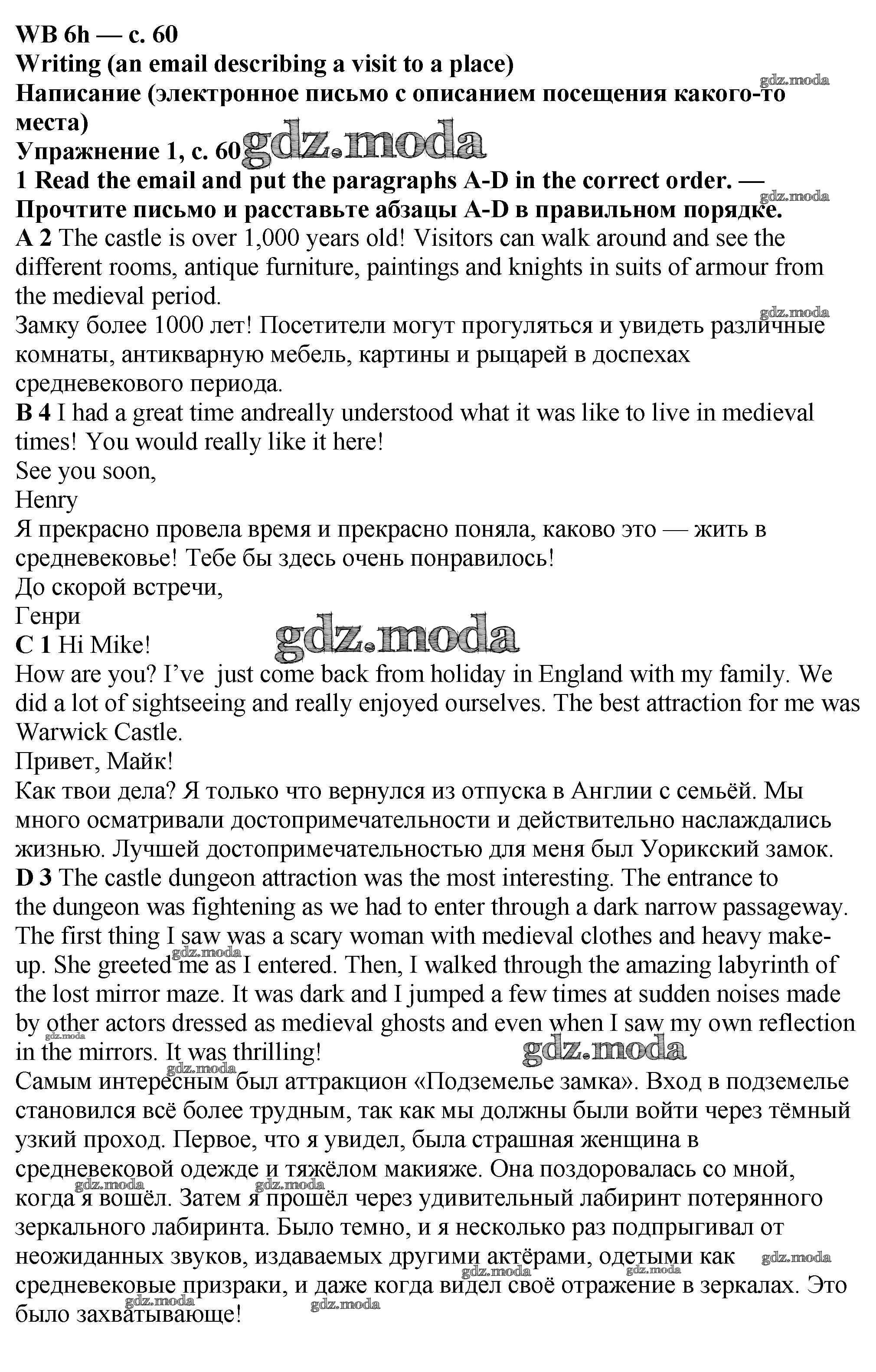 ГДЗ решение к заданию № 60 Английский язык 6 класс рабочая тетрадь Баранова Просвещение 2020 Углубленный уровень ФГОС бесплатно на гдз.мода!