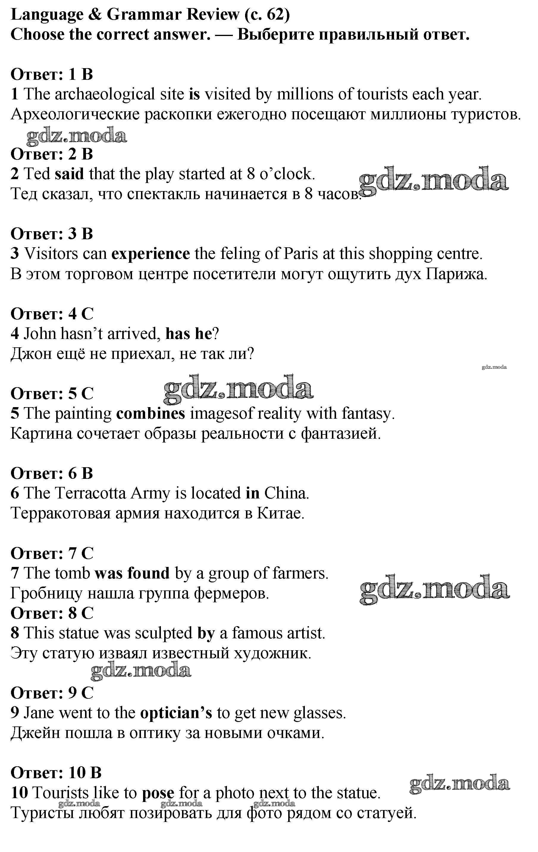 ГДЗ решение к заданию № 62 Английский язык 6 класс рабочая тетрадь Баранова Просвещение 2020 Углубленный уровень ФГОС бесплатно на гдз.мода!