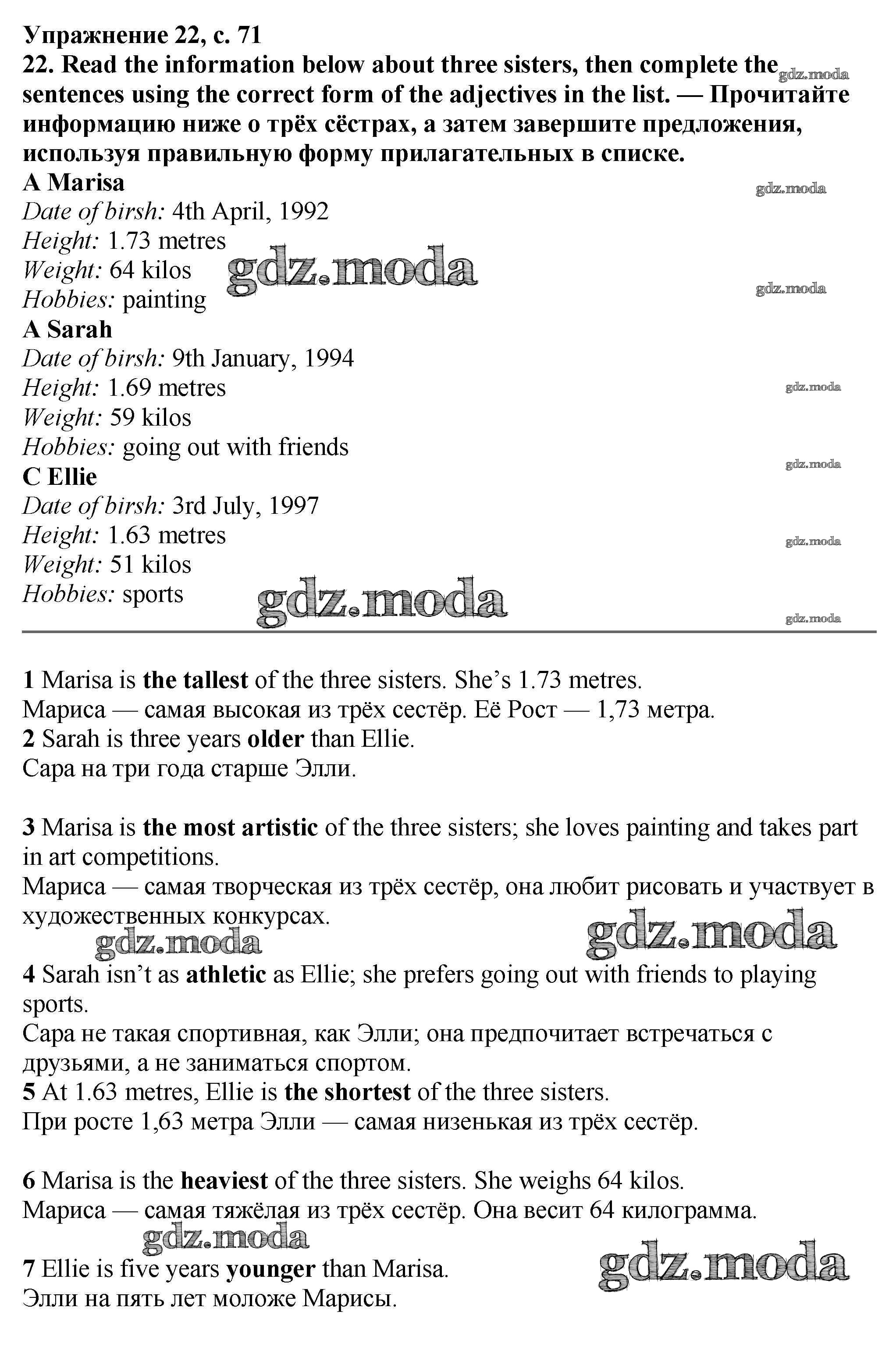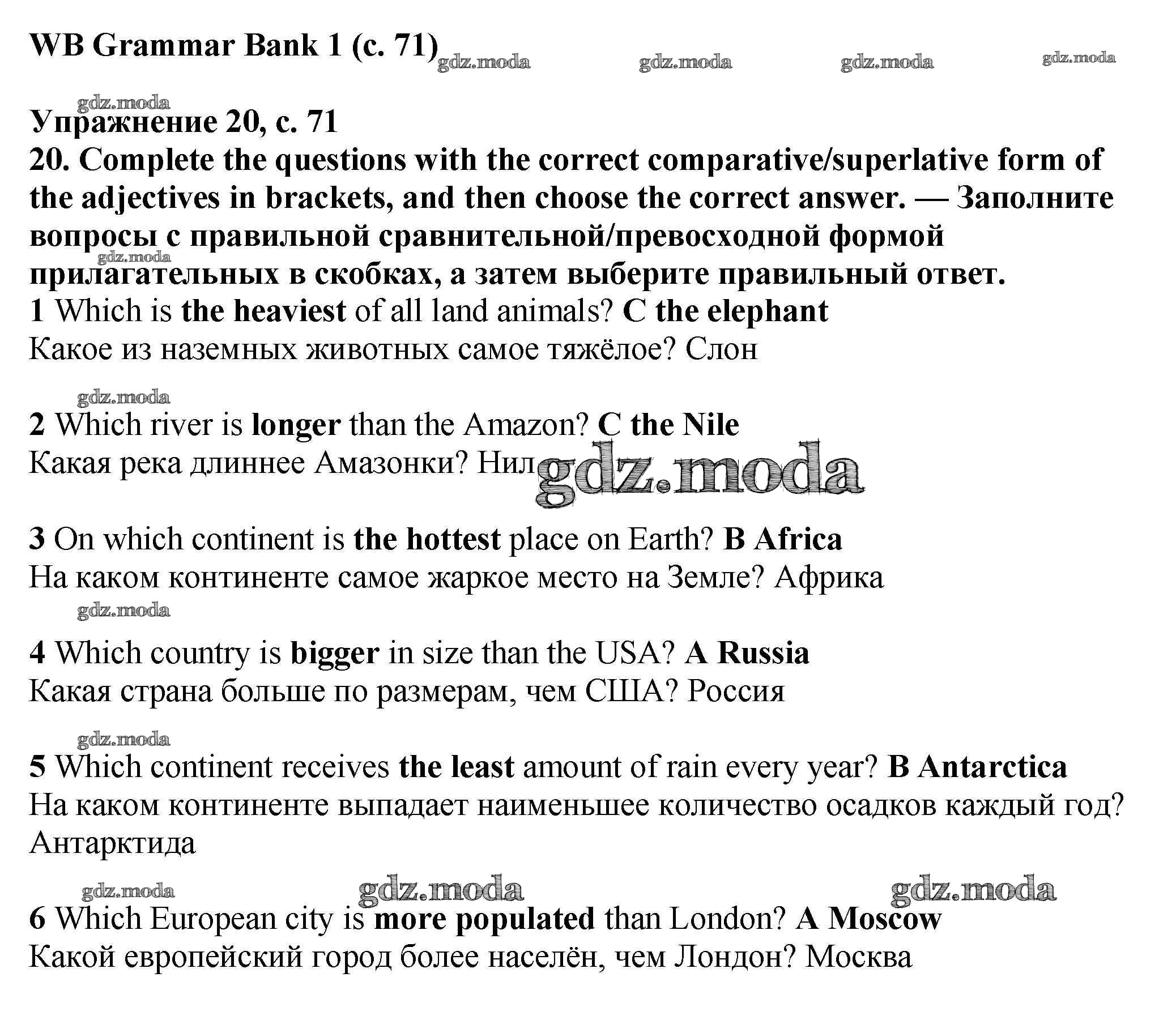 ГДЗ решение к заданию № 71 Английский язык 6 класс рабочая тетрадь Баранова Просвещение 2020 Углубленный уровень ФГОС бесплатно на гдз.мода!