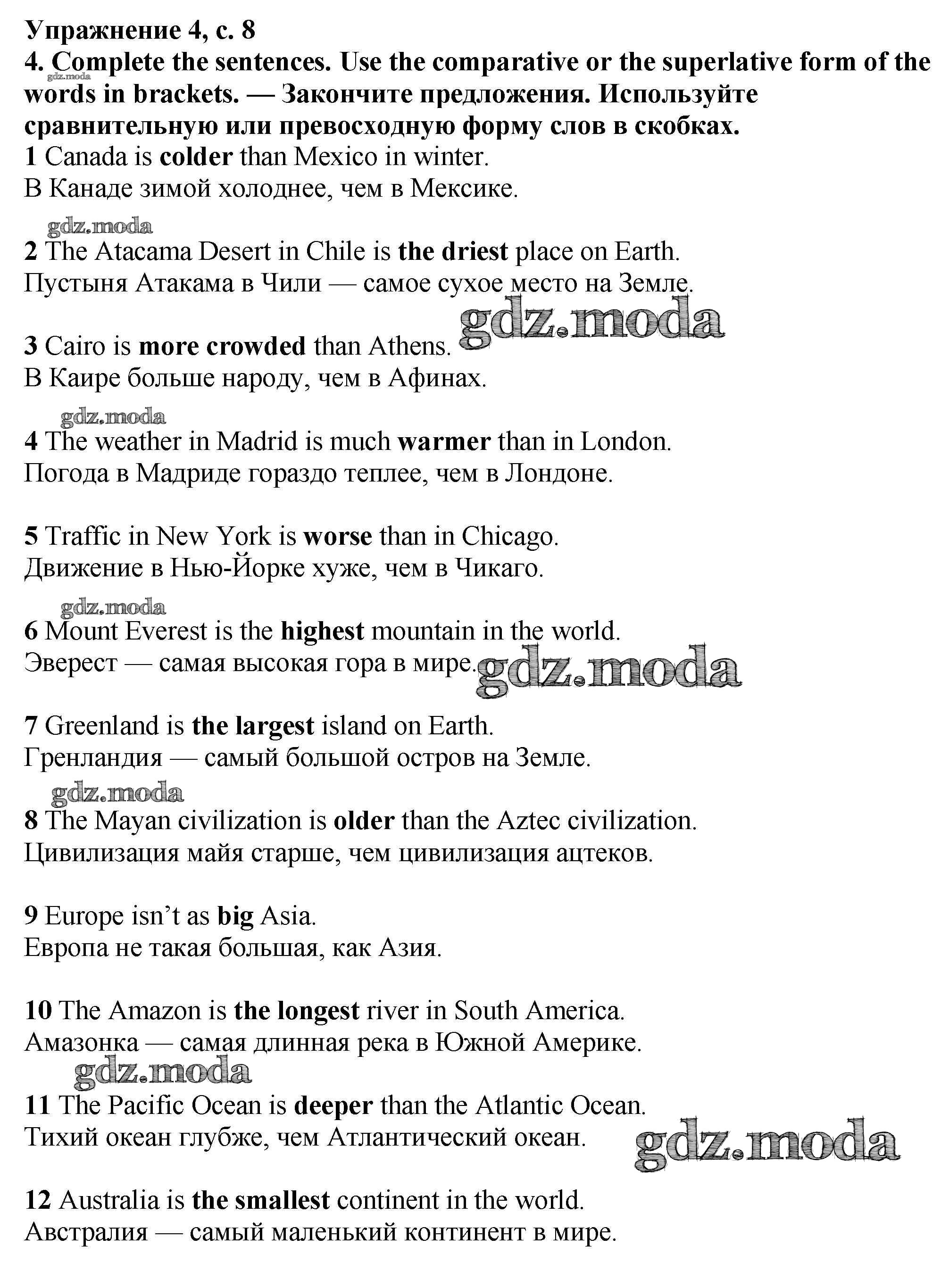 ГДЗ решение к заданию № 8 Английский язык 6 класс рабочая тетрадь Баранова Просвещение 2020 Углубленный уровень ФГОС бесплатно на гдз.мода!
