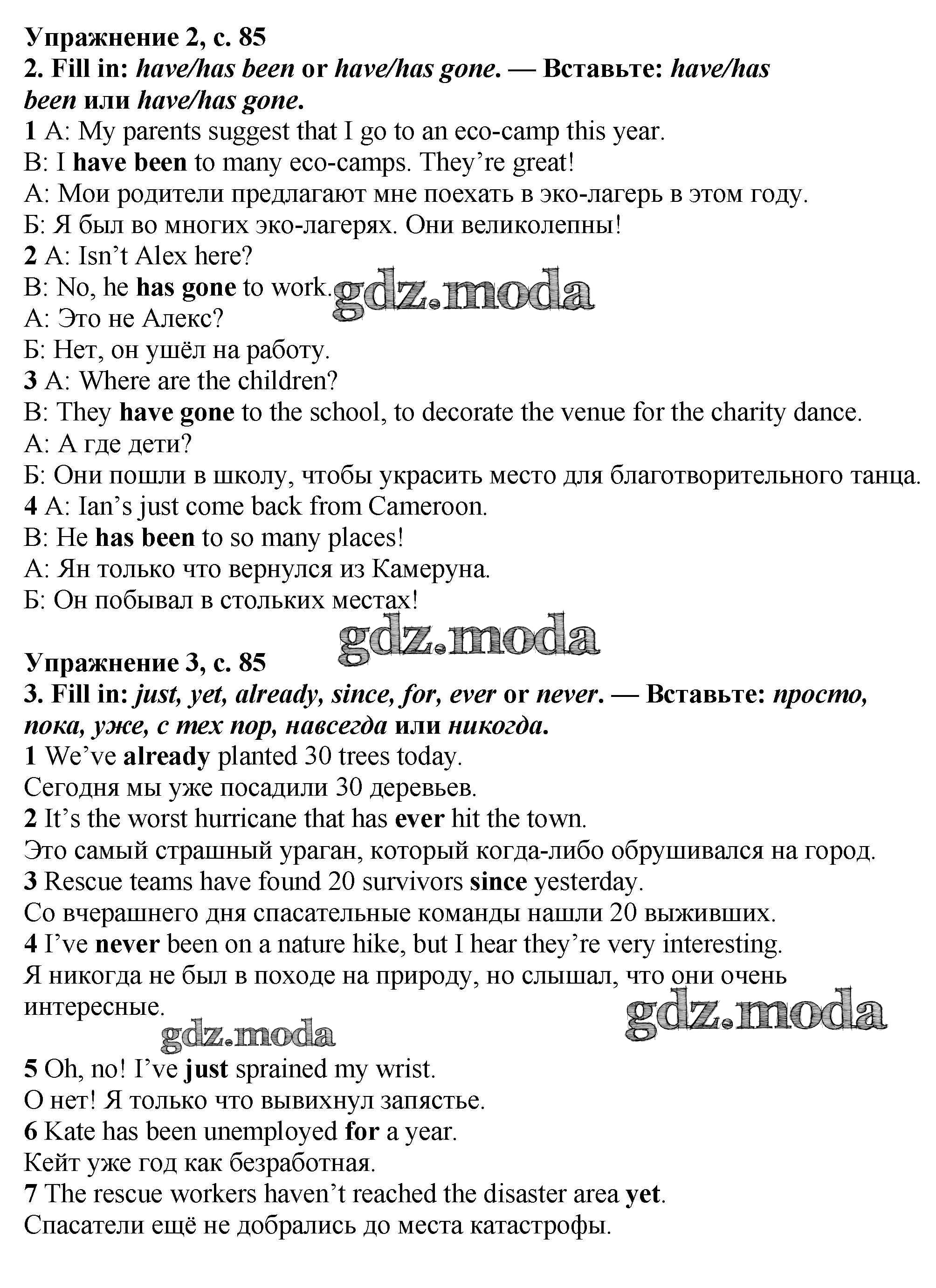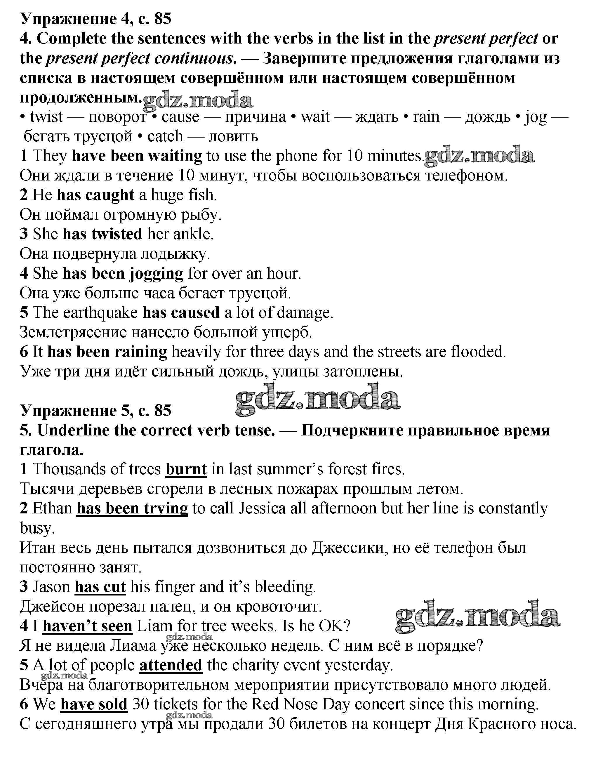 ГДЗ решение к заданию № 85 Английский язык 6 класс рабочая тетрадь Баранова Просвещение 2020 Углубленный уровень ФГОС бесплатно на гдз.мода!
