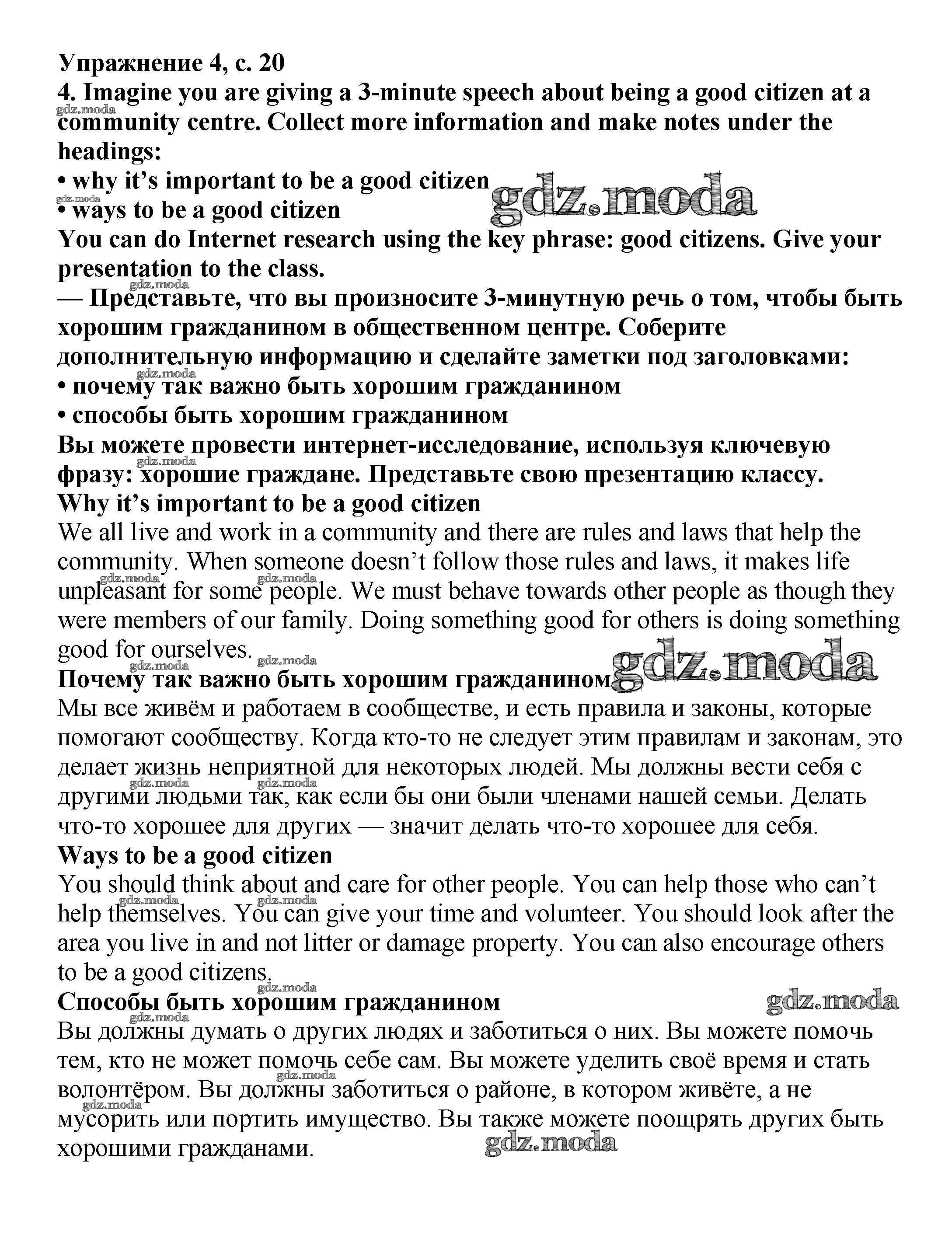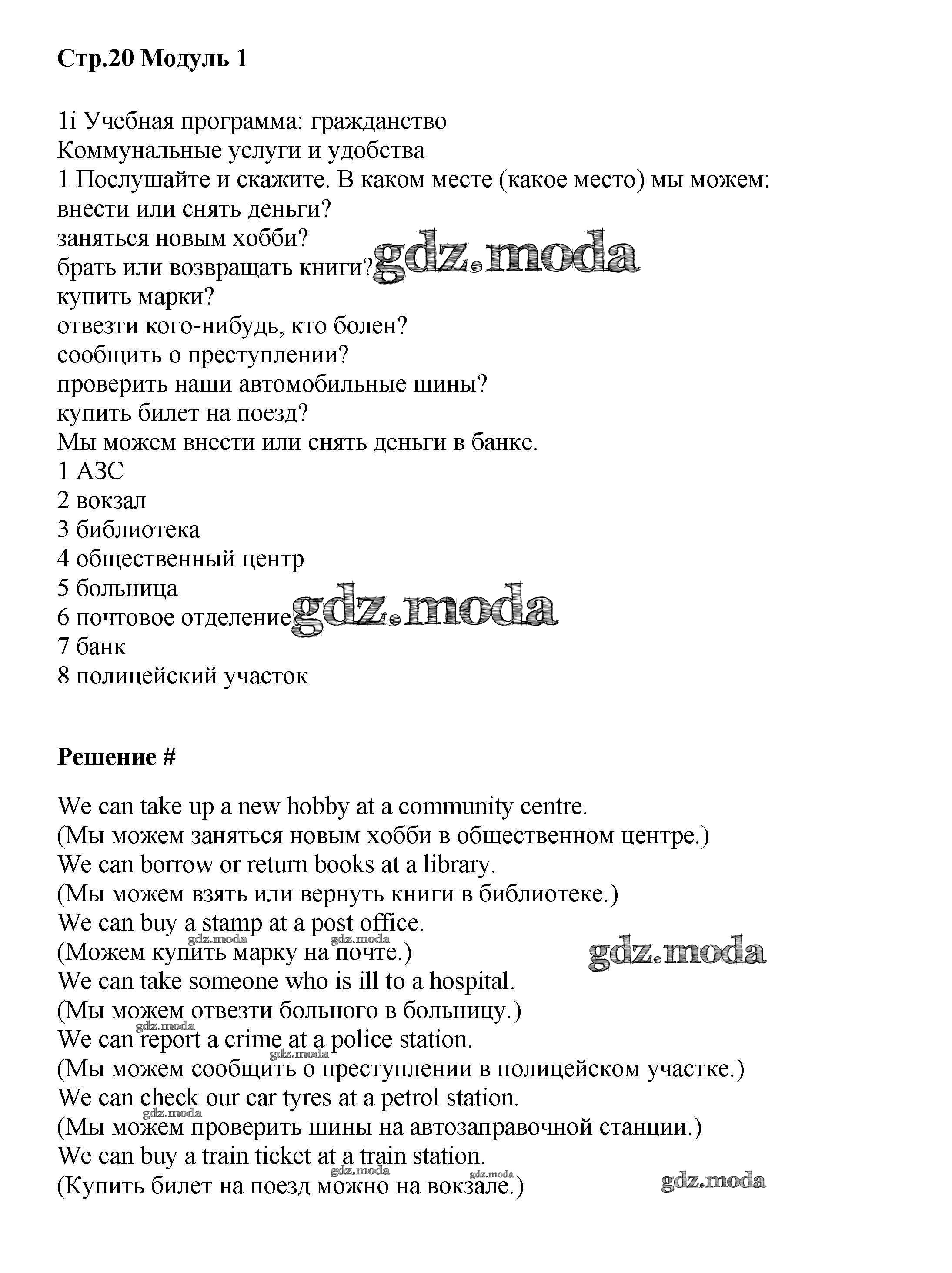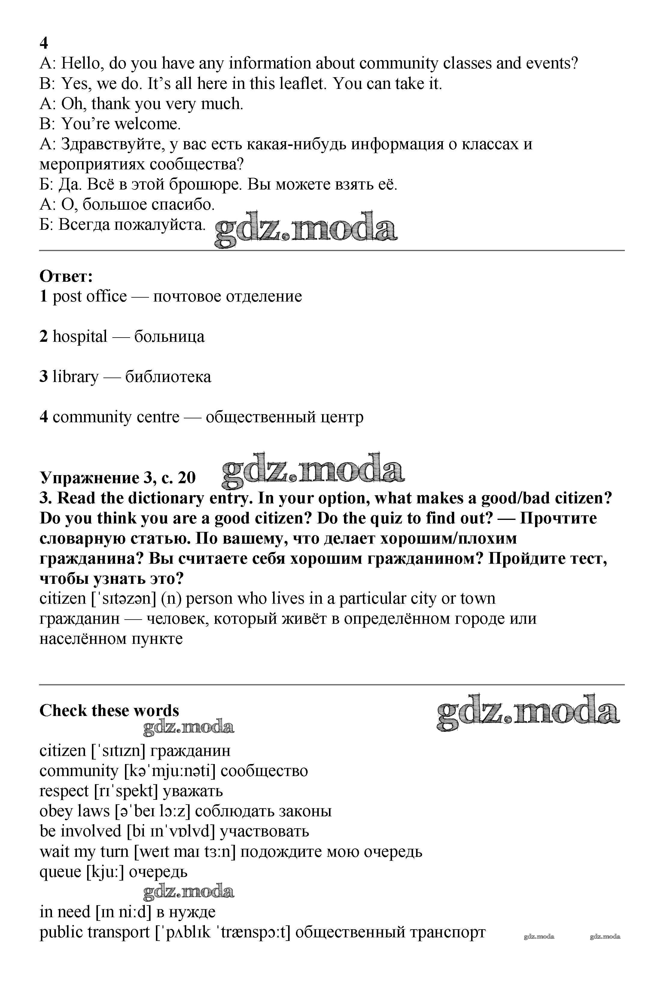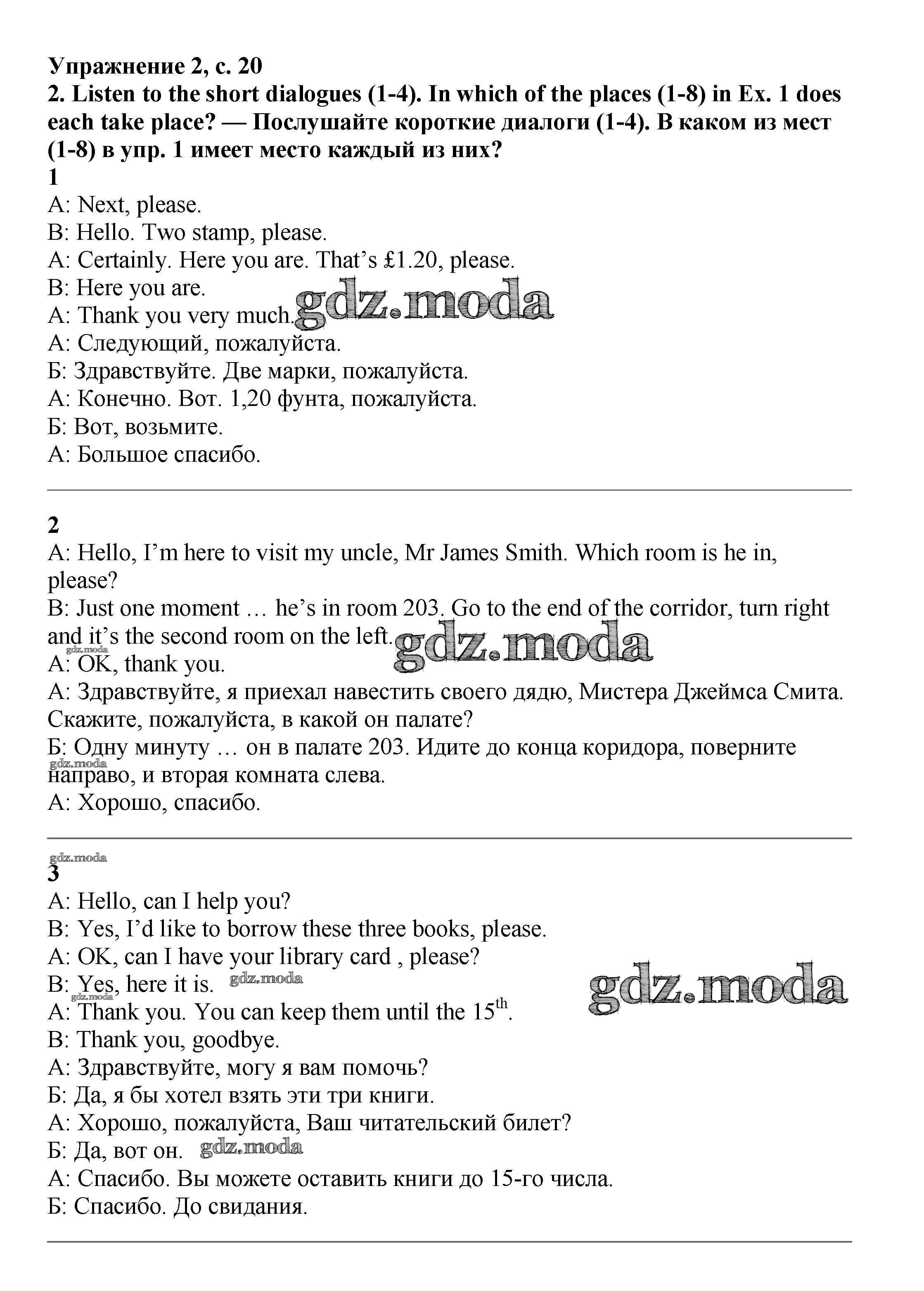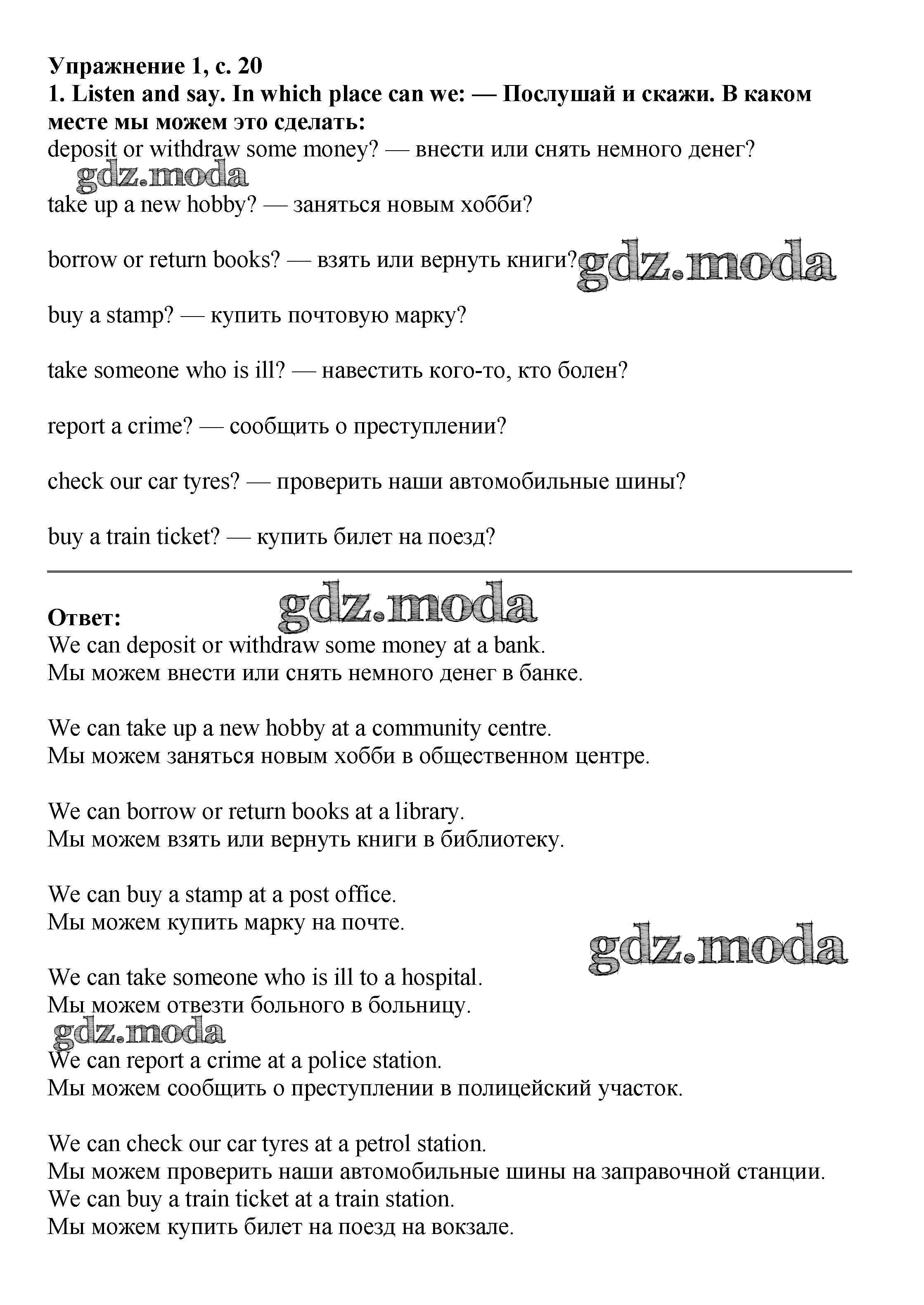 ОТВЕТ на задание № стр.20 Учебник по Английскому языку 6 класс Баранова Starlight Углубленный уровень