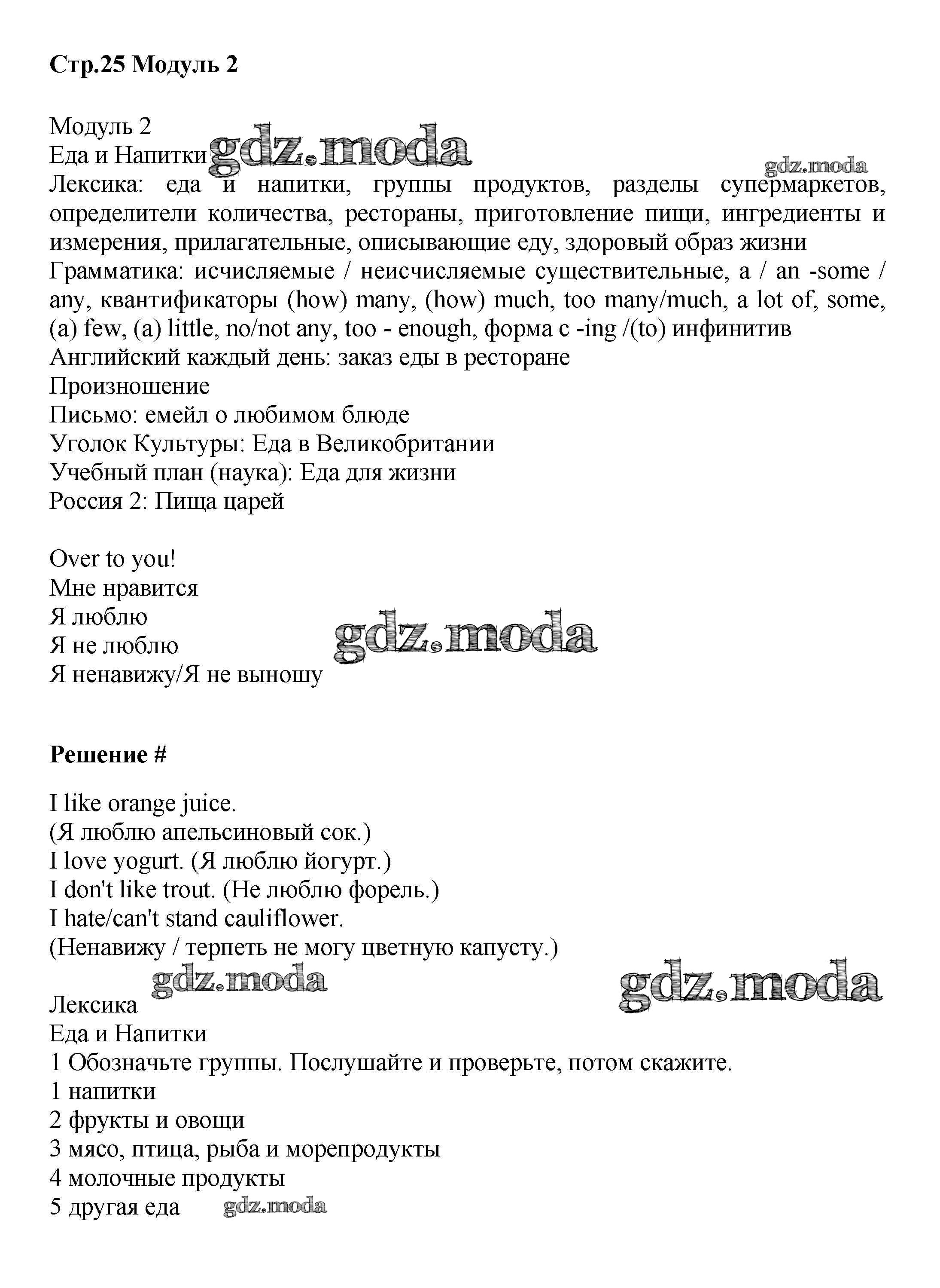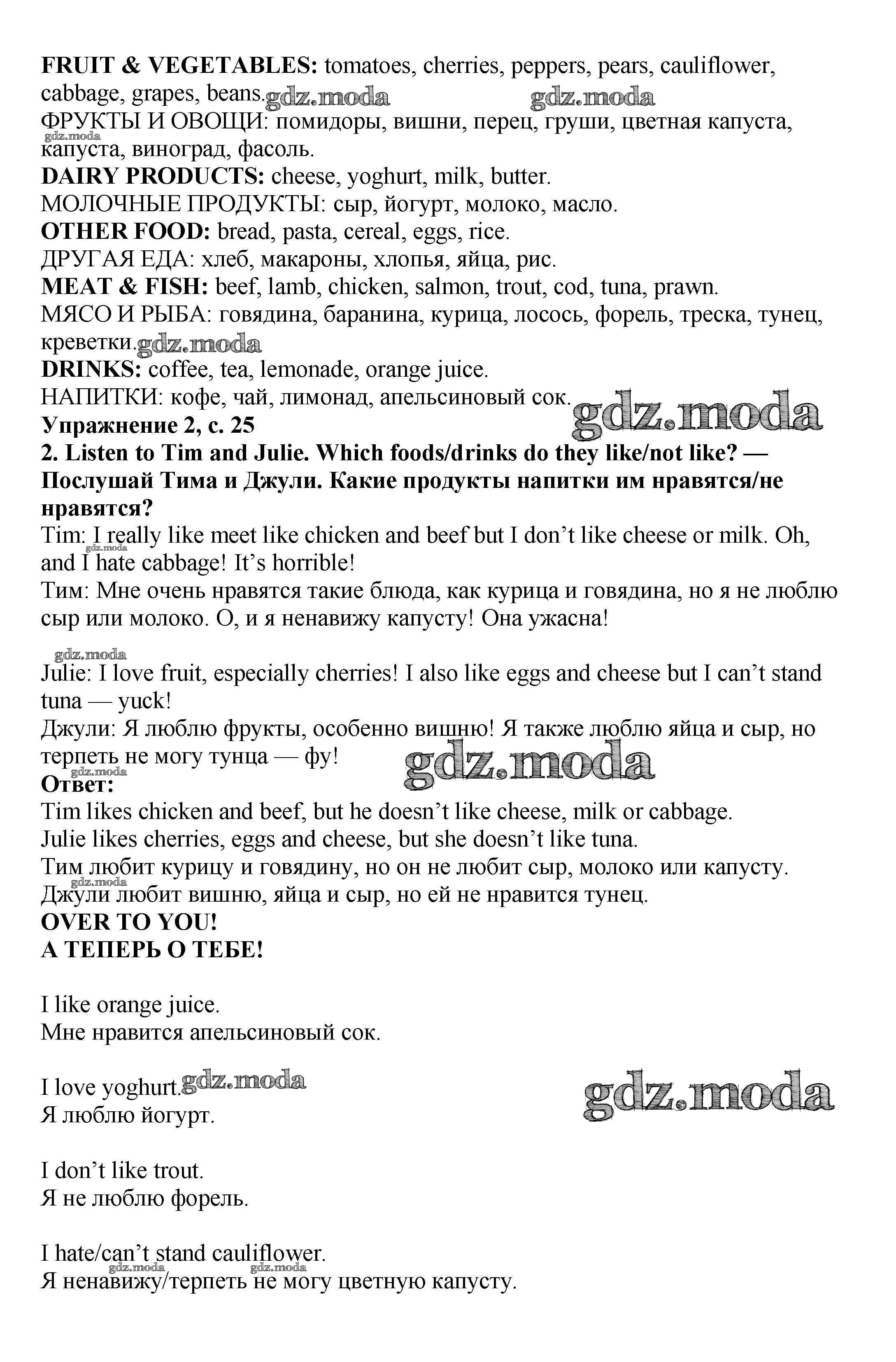ОТВЕТ на задание № стр.25 Учебник по Английскому языку 6 класс Баранова Starlight Углубленный уровень