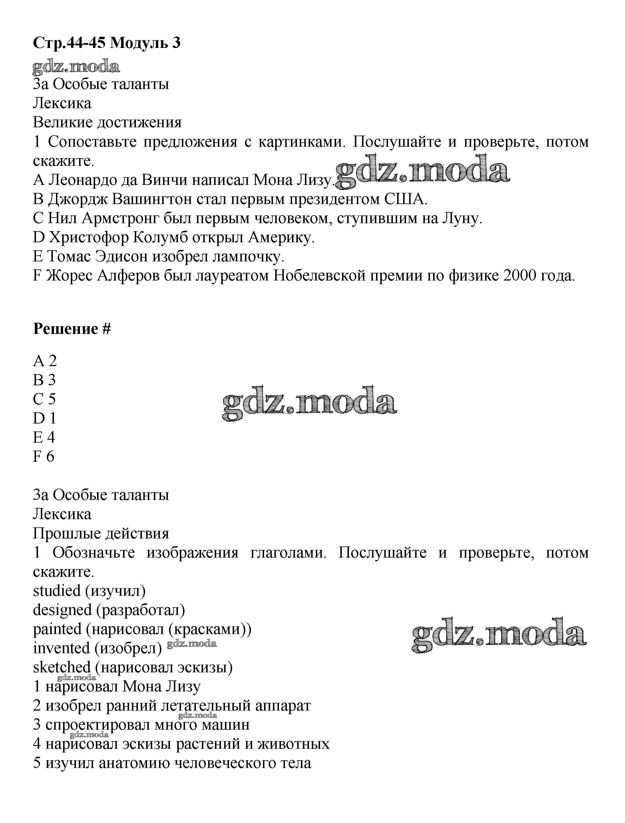 ОТВЕТ на задание № стр.44-45 Учебник по Английскому языку 6 класс Баранова Starlight Углубленный уровень