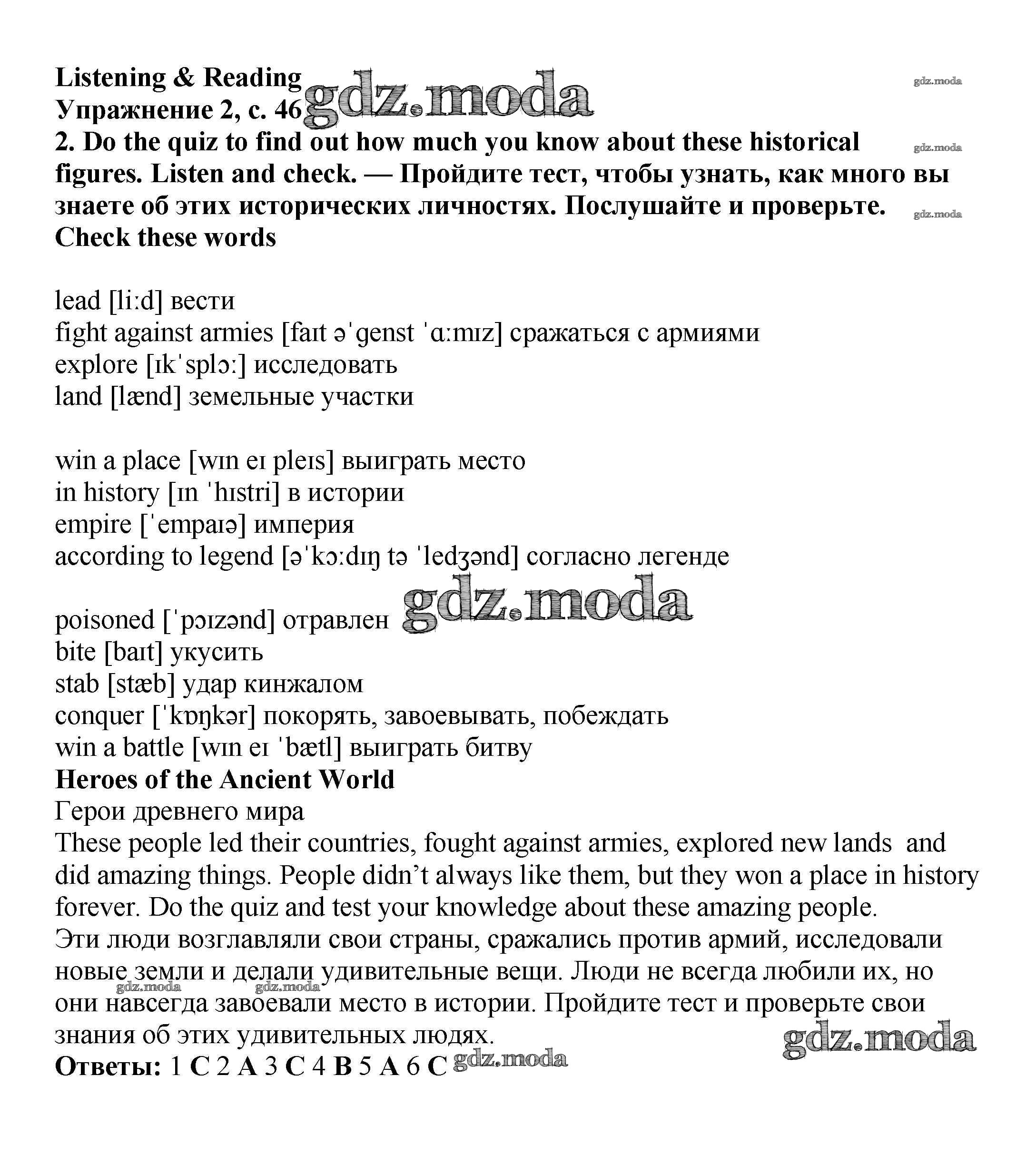 ОТВЕТ на задание № стр.46-47 Учебник по Английскому языку 6 класс Баранова Starlight Углубленный уровень