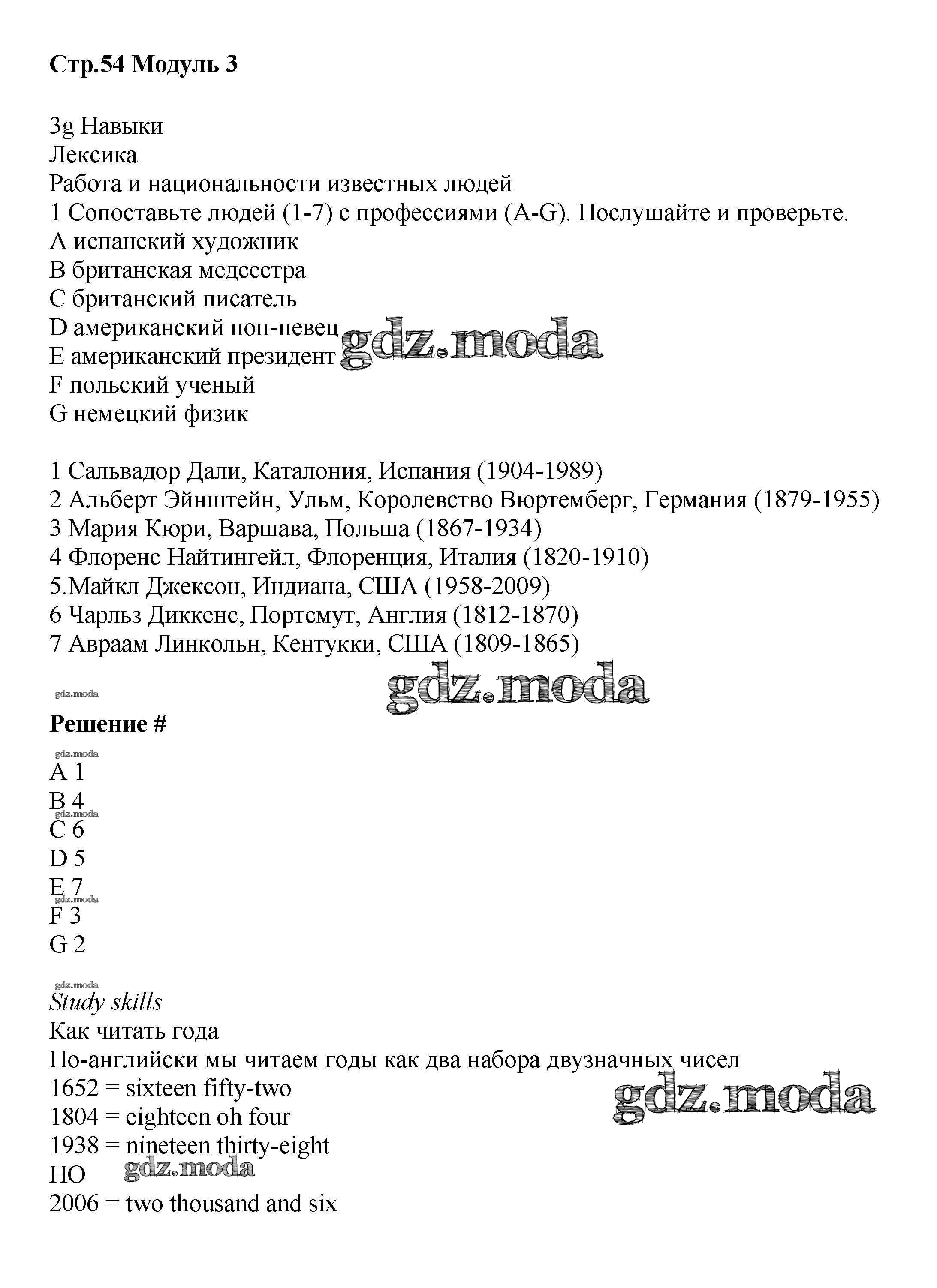 ОТВЕТ на задание № стр.54 Учебник по Английскому языку 6 класс Баранова Starlight Углубленный уровень