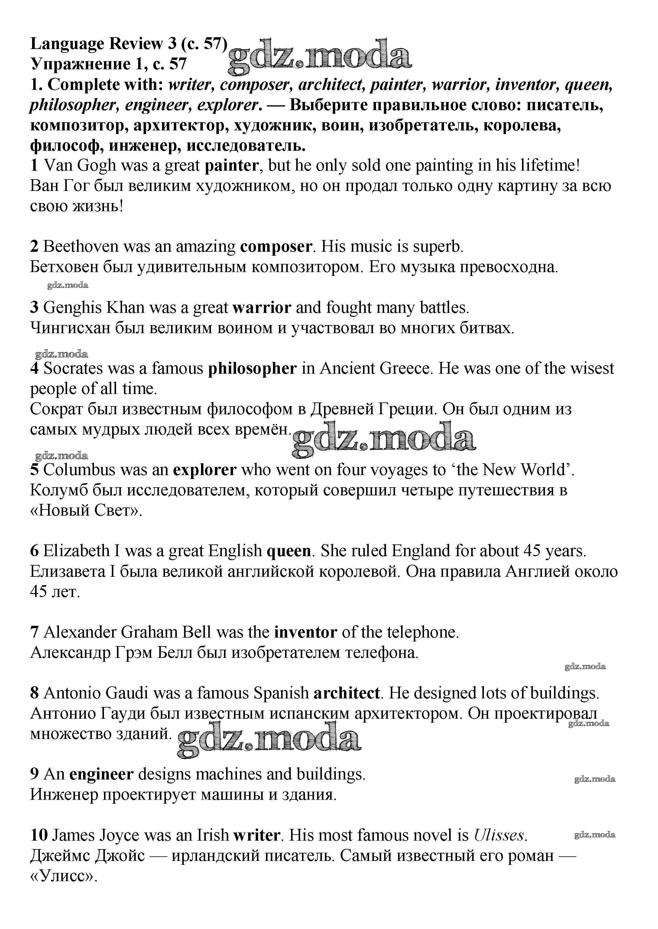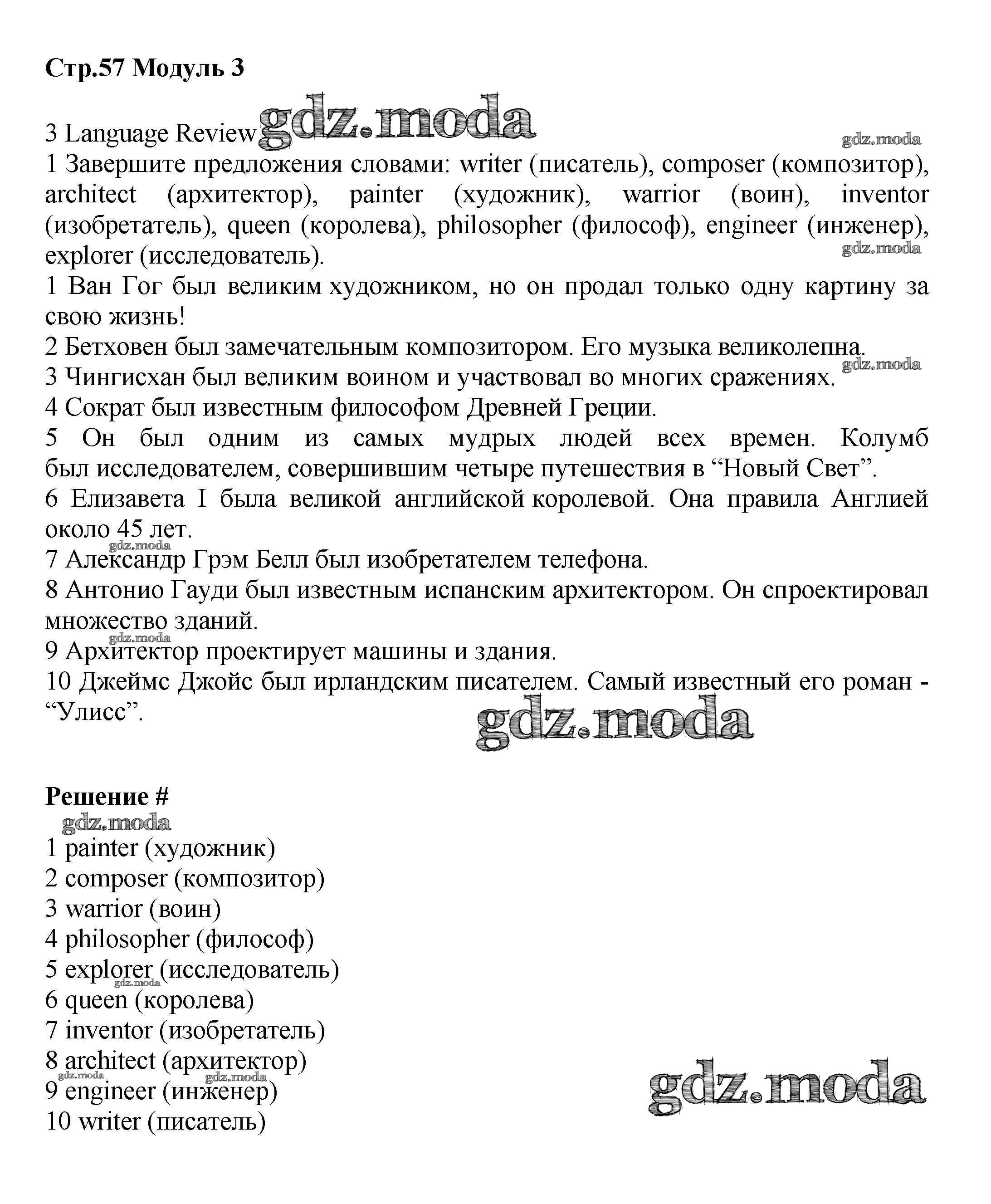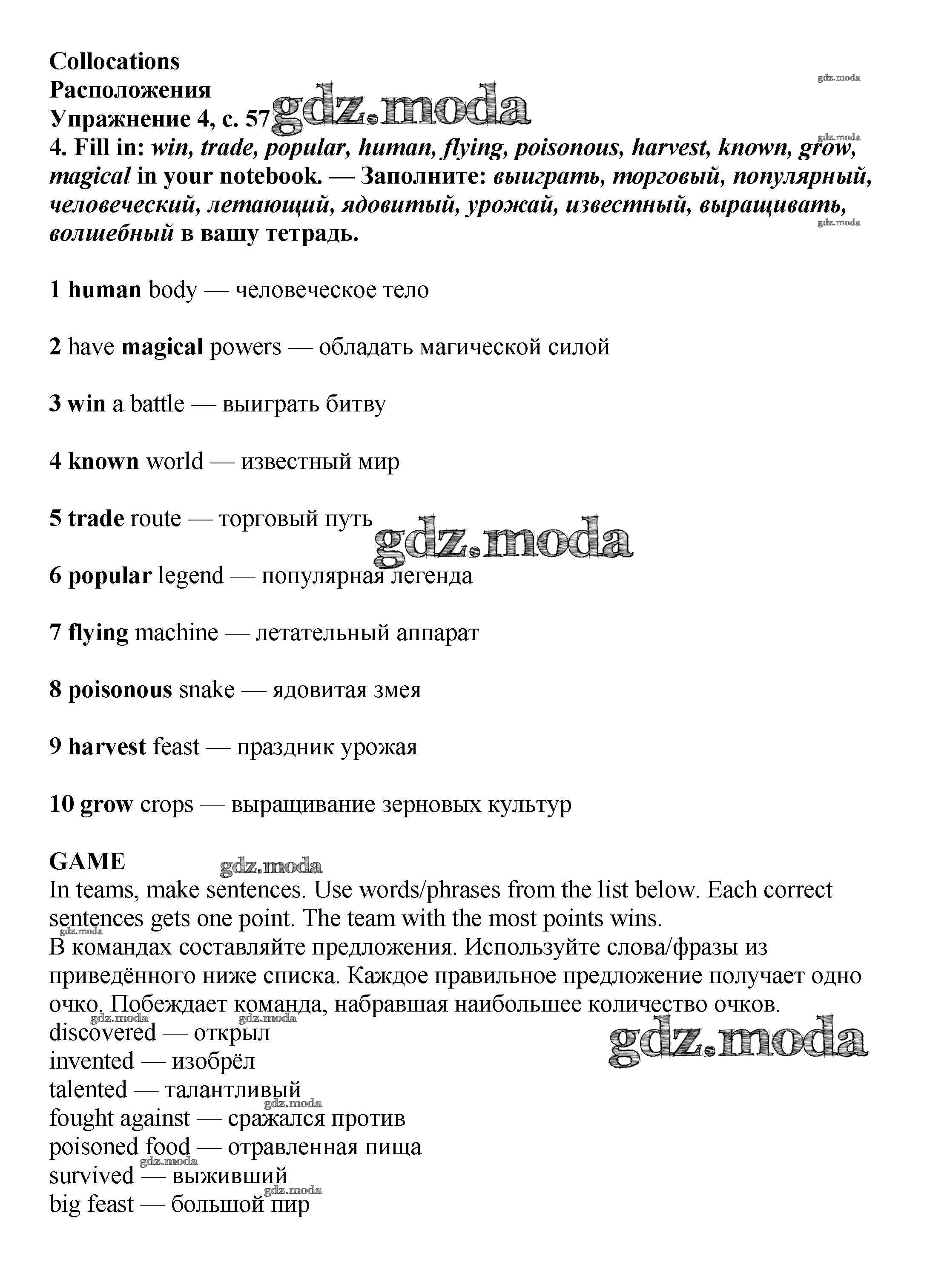ОТВЕТ на задание № стр.57 Учебник по Английскому языку 6 класс Баранова Starlight Углубленный уровень