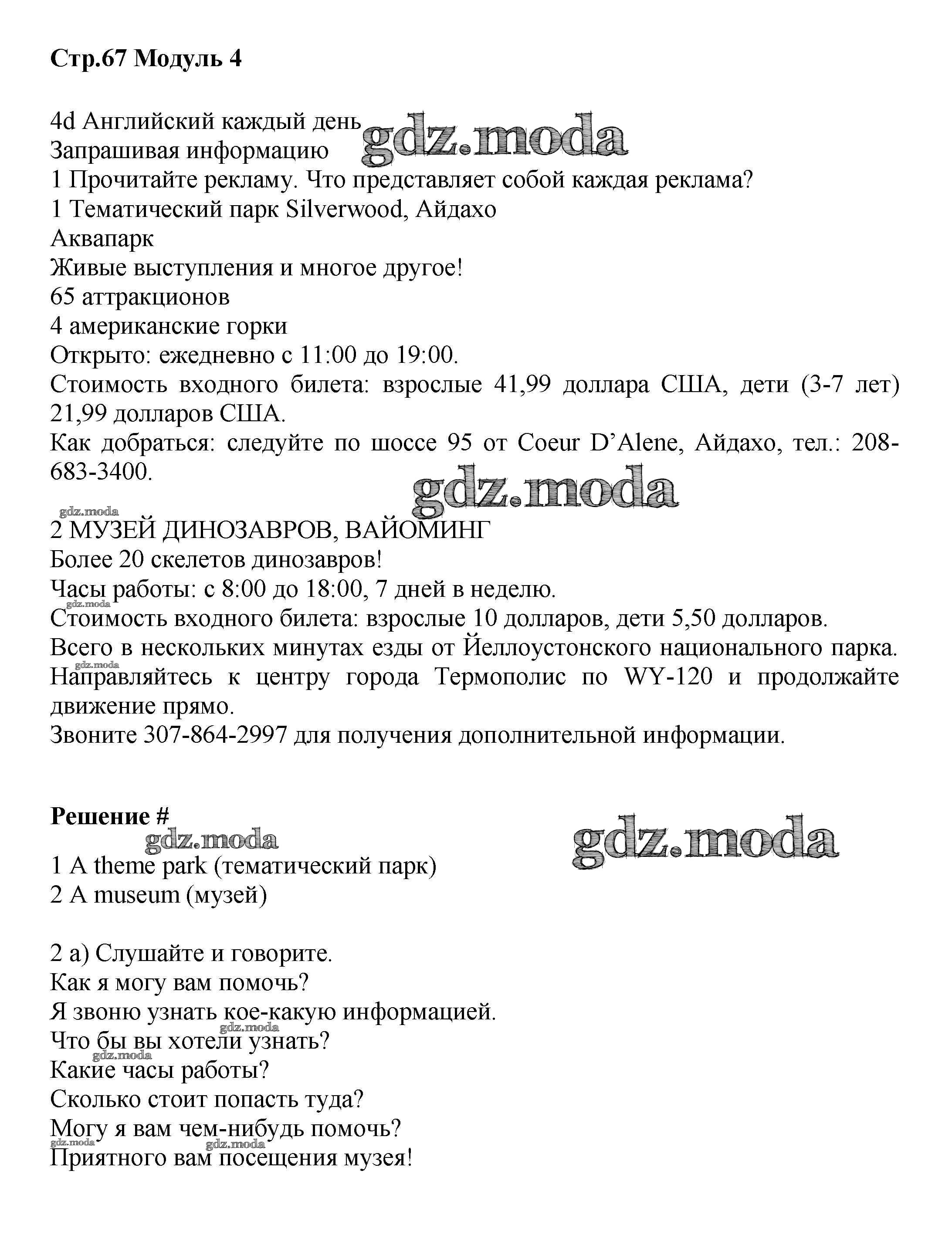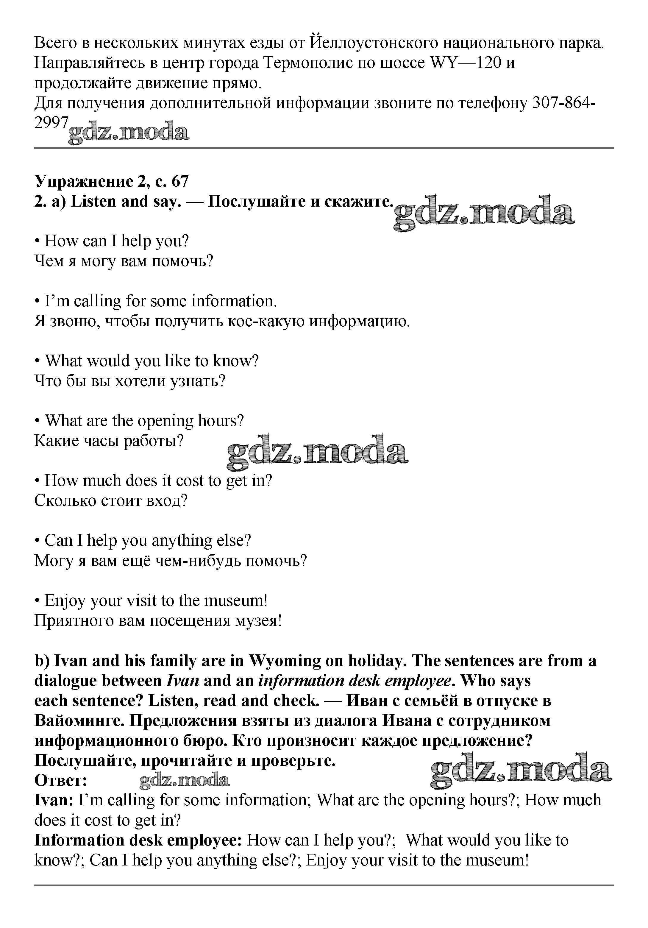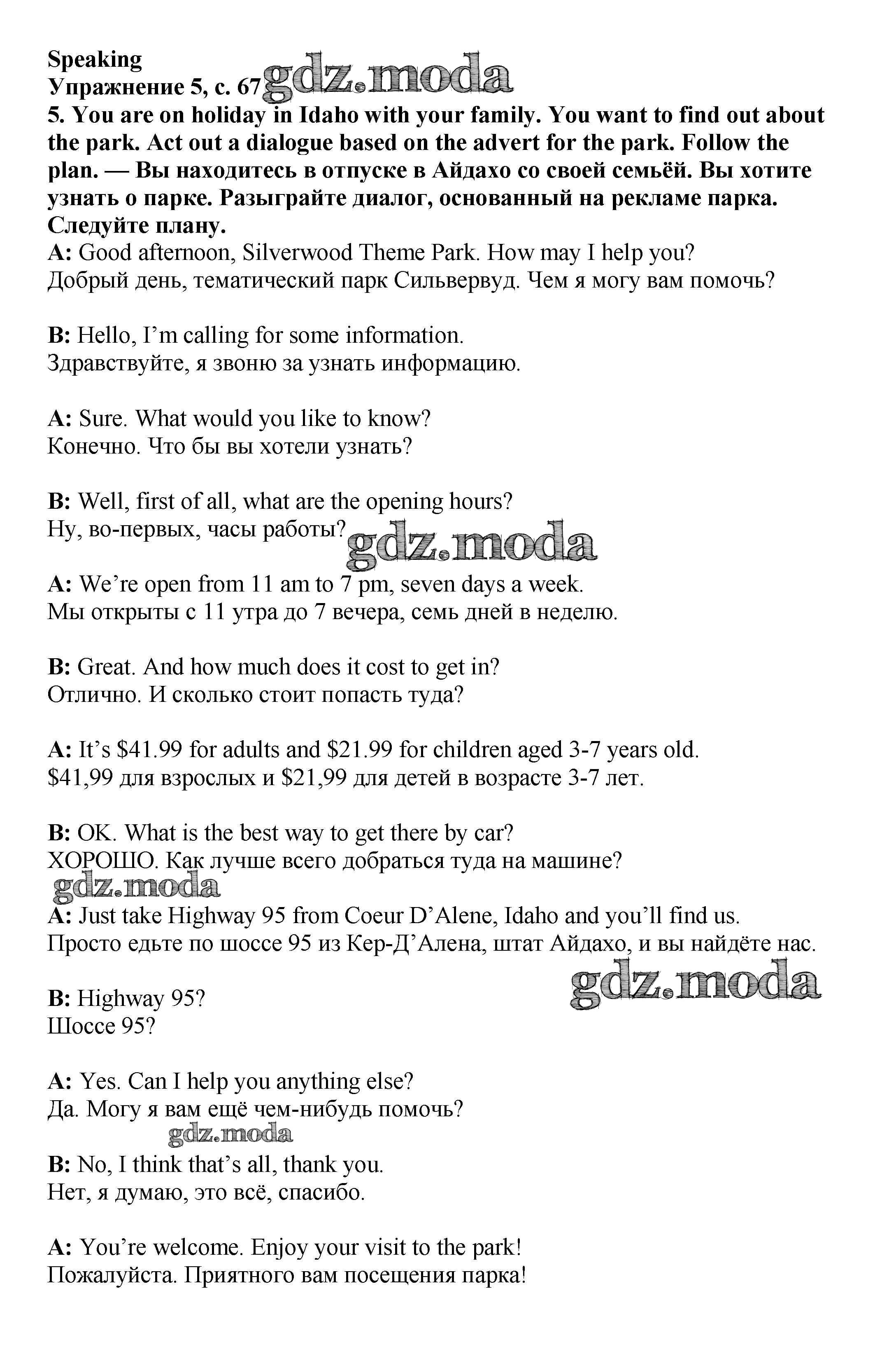 ОТВЕТ на задание № стр.67 Учебник по Английскому языку 6 класс Баранова Starlight Углубленный уровень