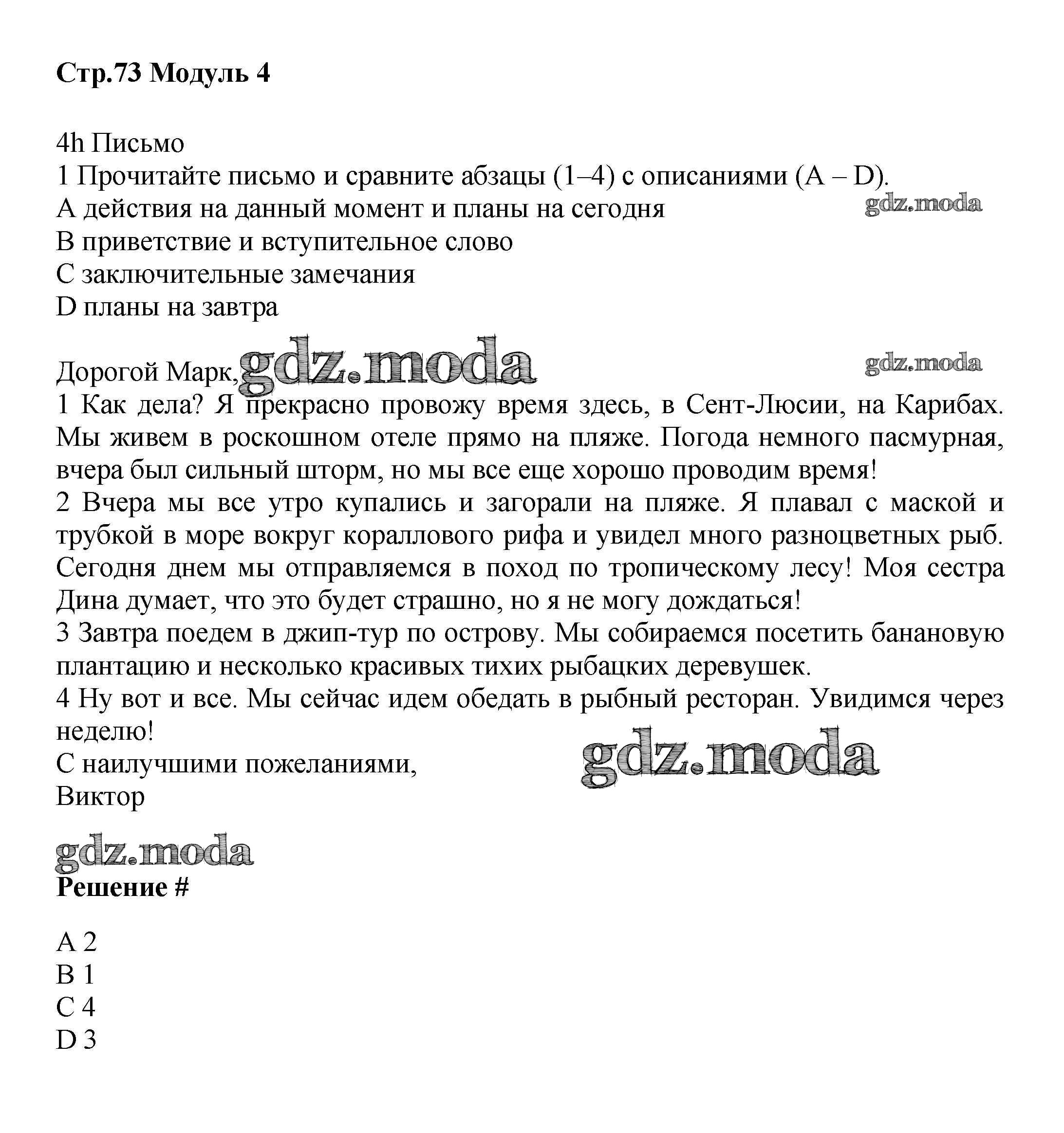 ОТВЕТ на задание № стр.73 Учебник по Английскому языку 6 класс Баранова Starlight Углубленный уровень