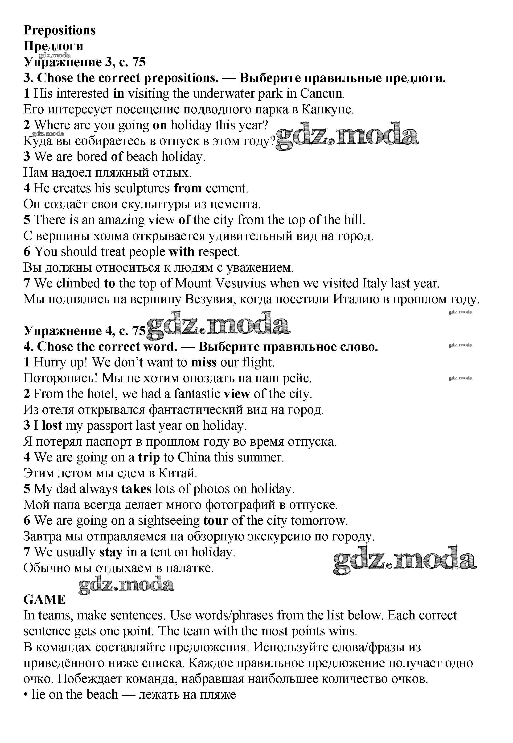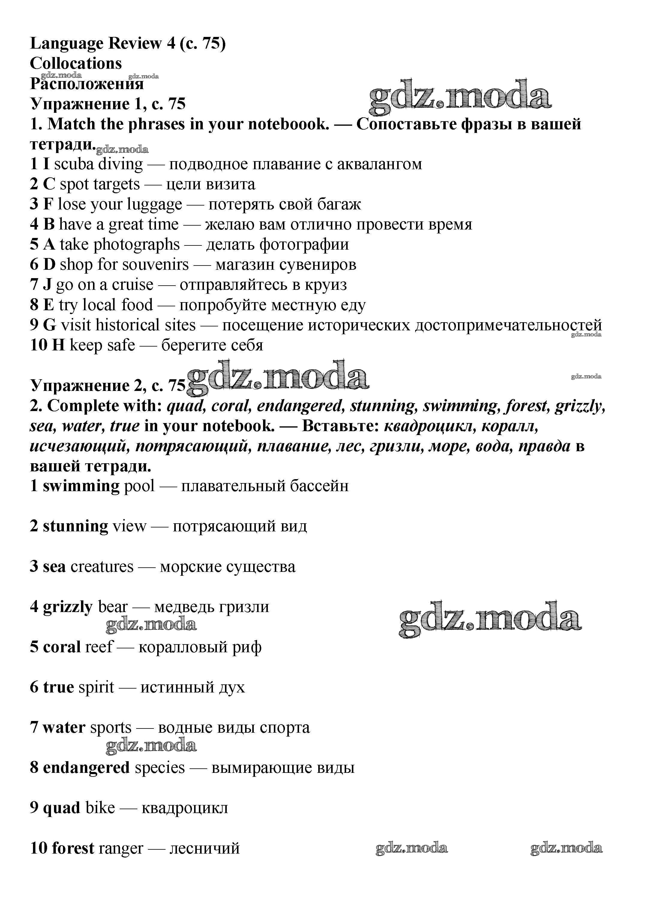 ОТВЕТ на задание № стр.75 Учебник по Английскому языку 6 класс Баранова Starlight Углубленный уровень