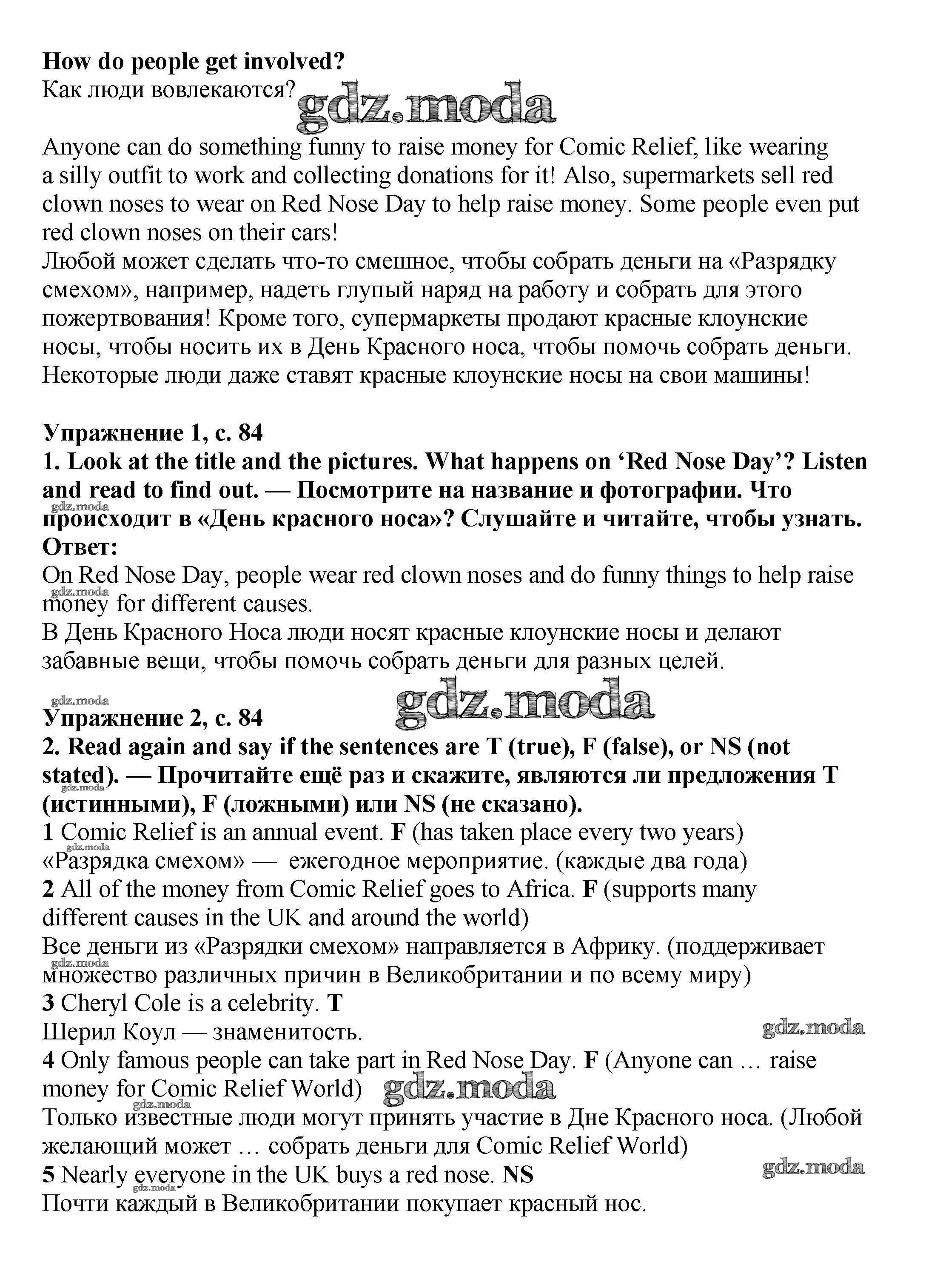 ОТВЕТ на задание № стр.84 Учебник по Английскому языку 6 класс Баранова Starlight Углубленный уровень