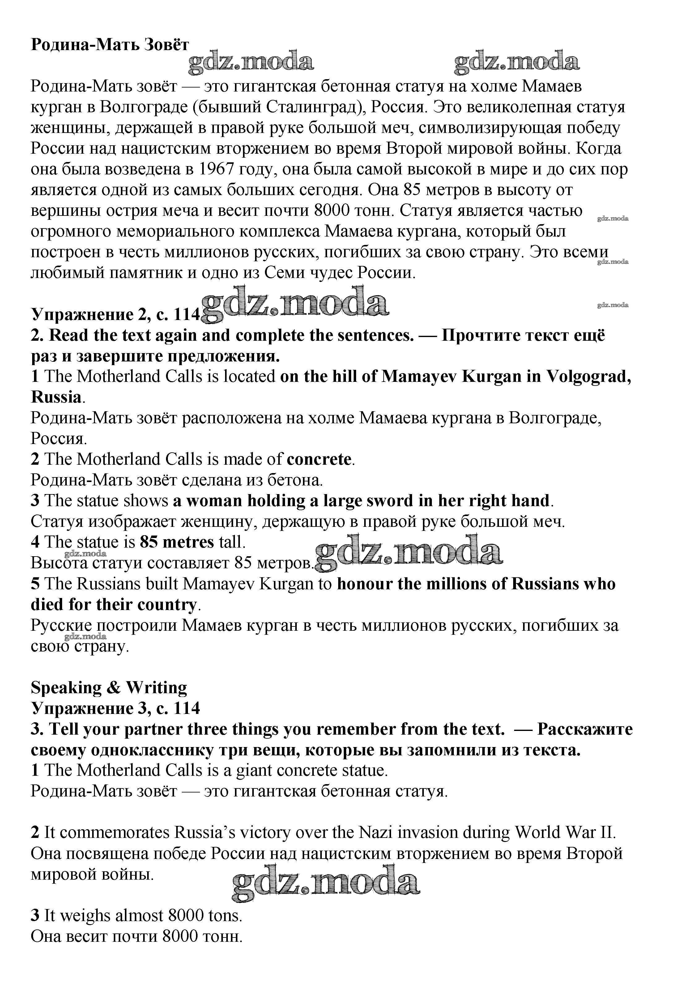 ОТВЕТ на задание № стр.114 Учебник по Английскому языку 6 класс Баранова Starlight Углубленный уровень