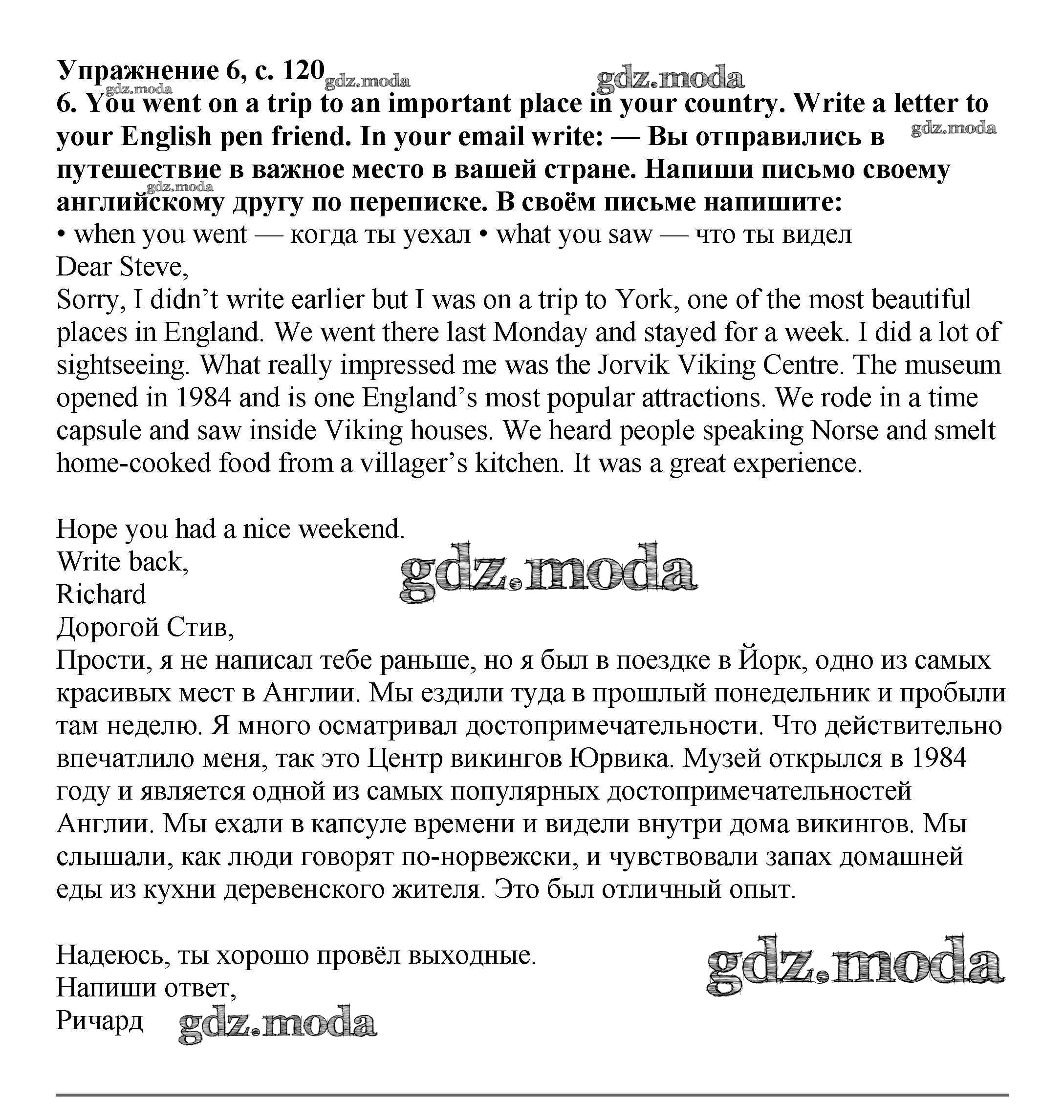 ОТВЕТ на задание № стр.120 Учебник по Английскому языку 6 класс Баранова Starlight Углубленный уровень