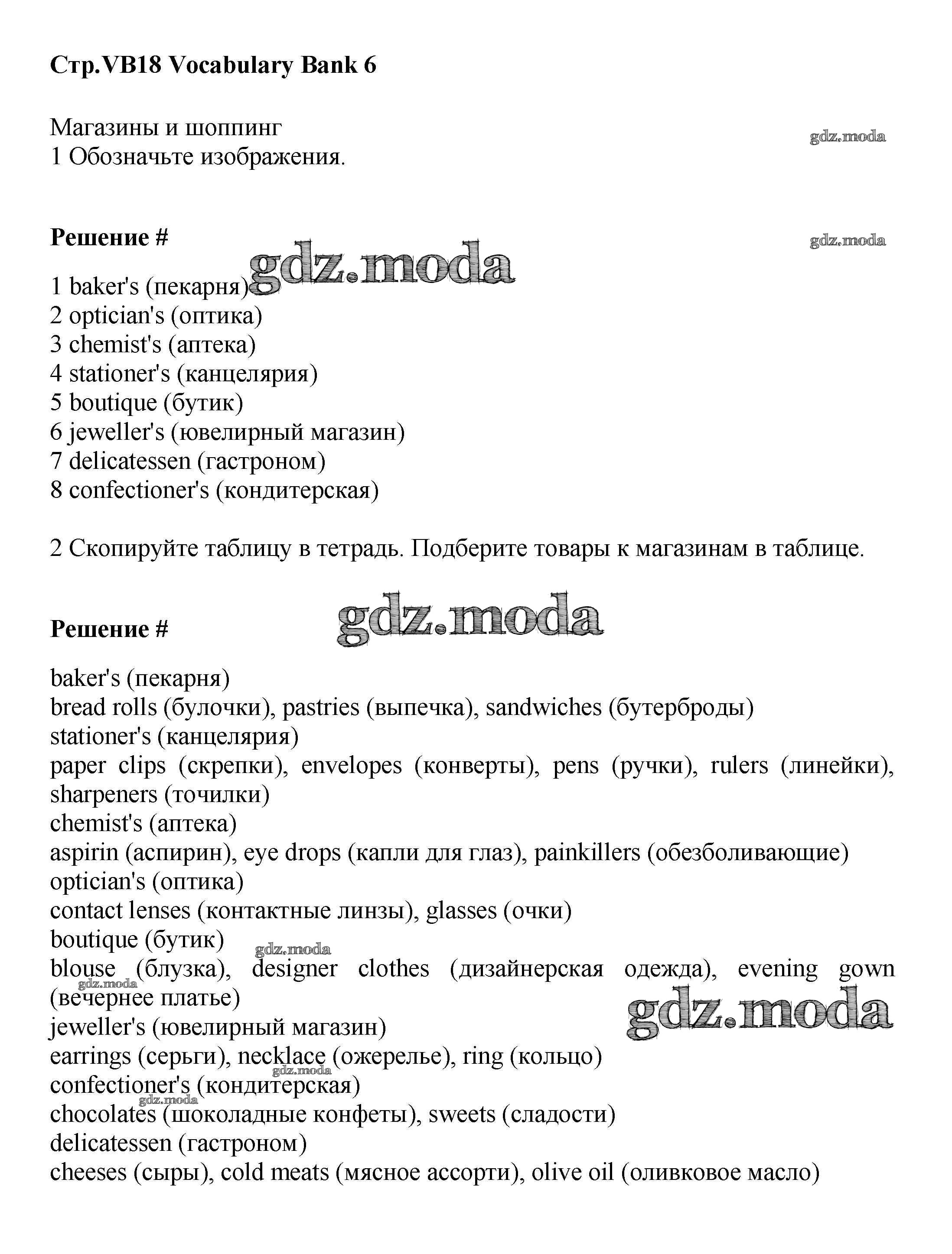 ОТВЕТ на задание № VB18 Учебник по Английскому языку 6 класс Баранова Starlight Углубленный уровень
