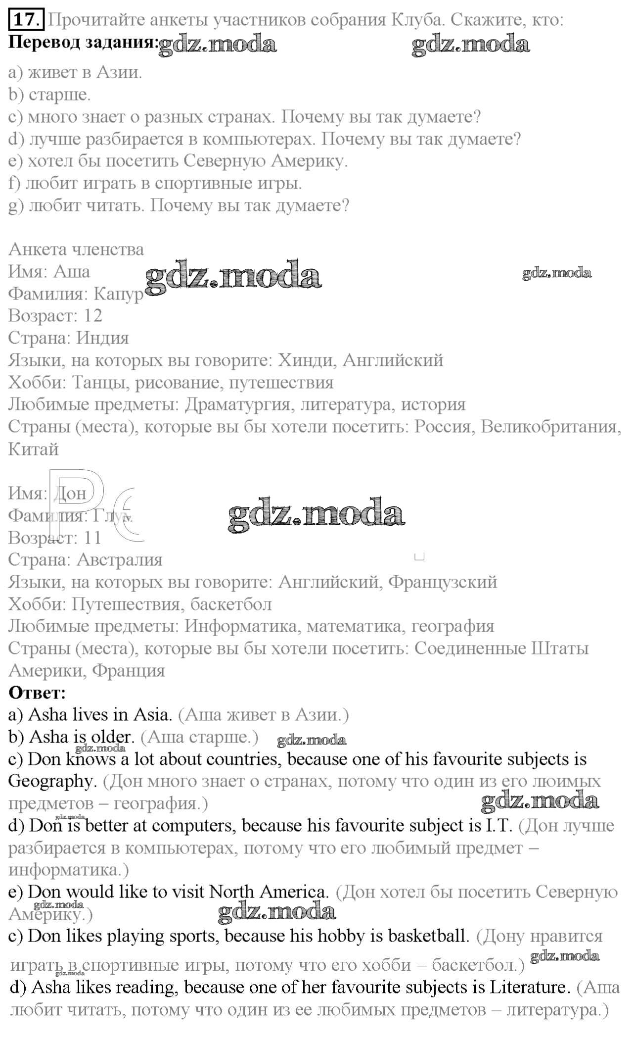 ОТВЕТ на задание № 17 Учебник по Английскому языку 6 класс Биболетова Enjoy English