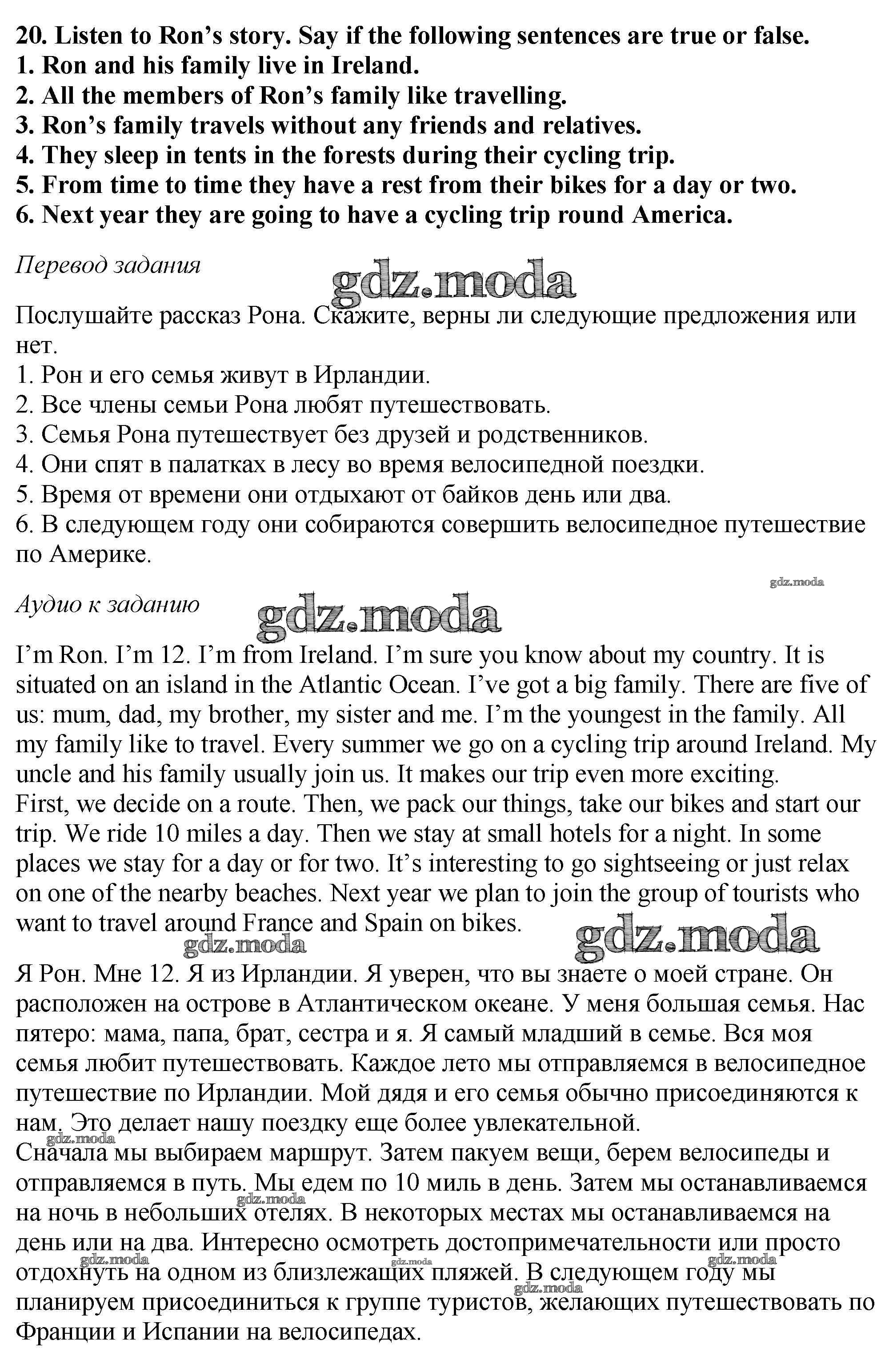 ОТВЕТ на задание № 20 Учебник по Английскому языку 6 класс Биболетова Enjoy English