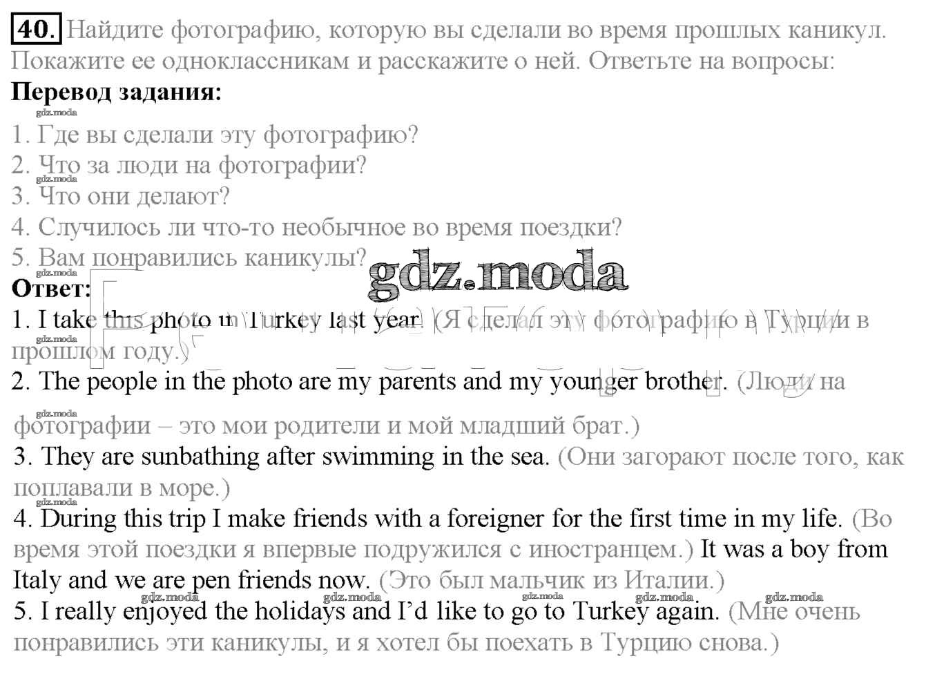 ОТВЕТ на задание № 40 Учебник по Английскому языку 6 класс Биболетова Enjoy English