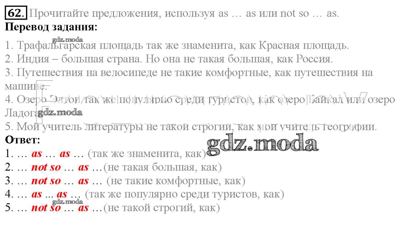 ОТВЕТ на задание № 62 Учебник по Английскому языку 6 класс Биболетова Enjoy English