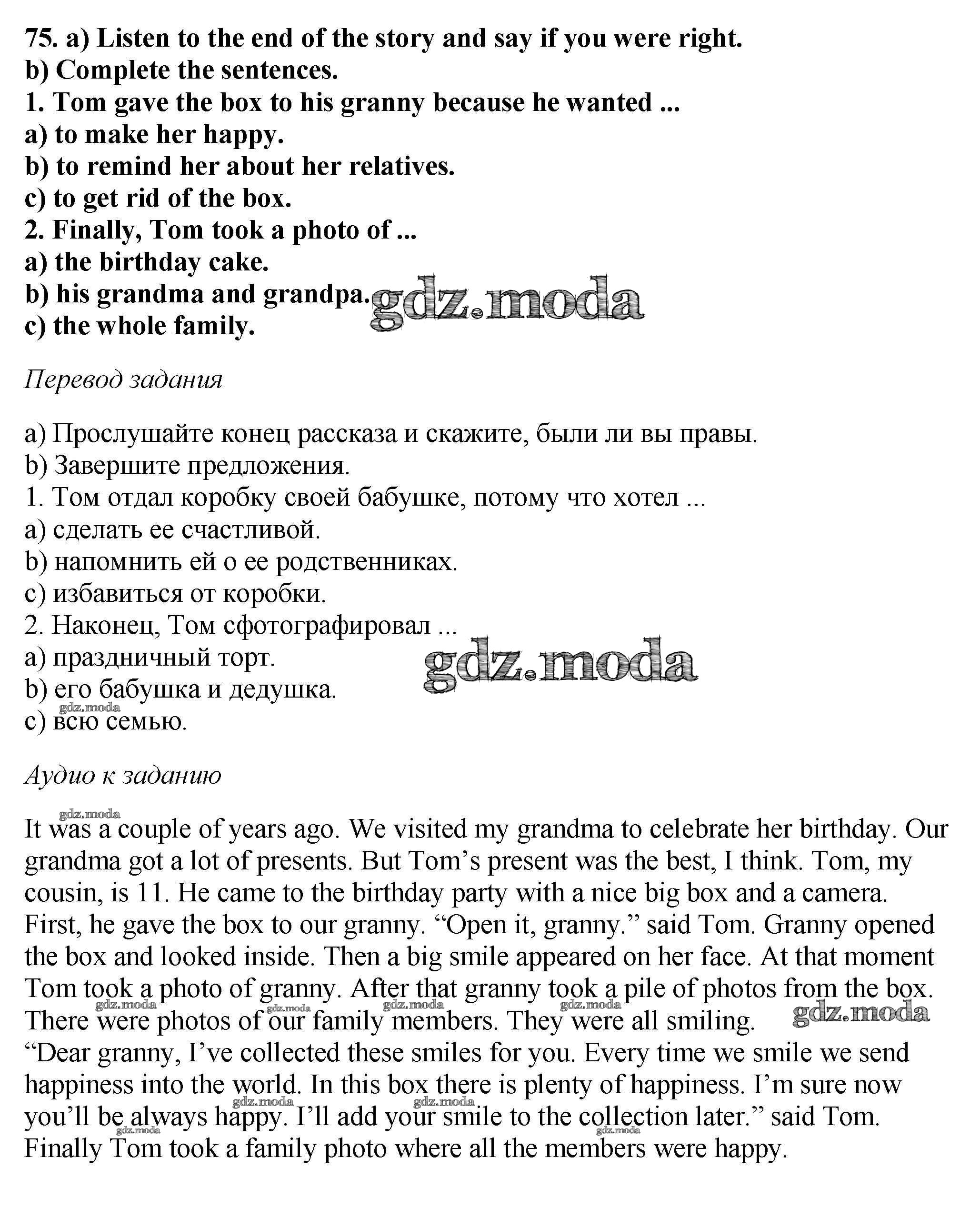 ОТВЕТ на задание № 75 Учебник по Английскому языку 6 класс Биболетова Enjoy English