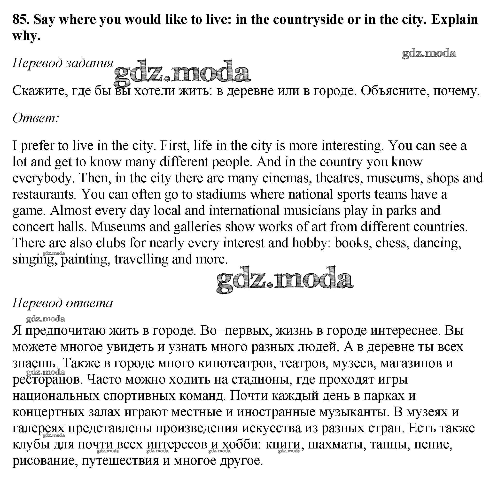 ОТВЕТ на задание № 85 Учебник по Английскому языку 6 класс Биболетова Enjoy English