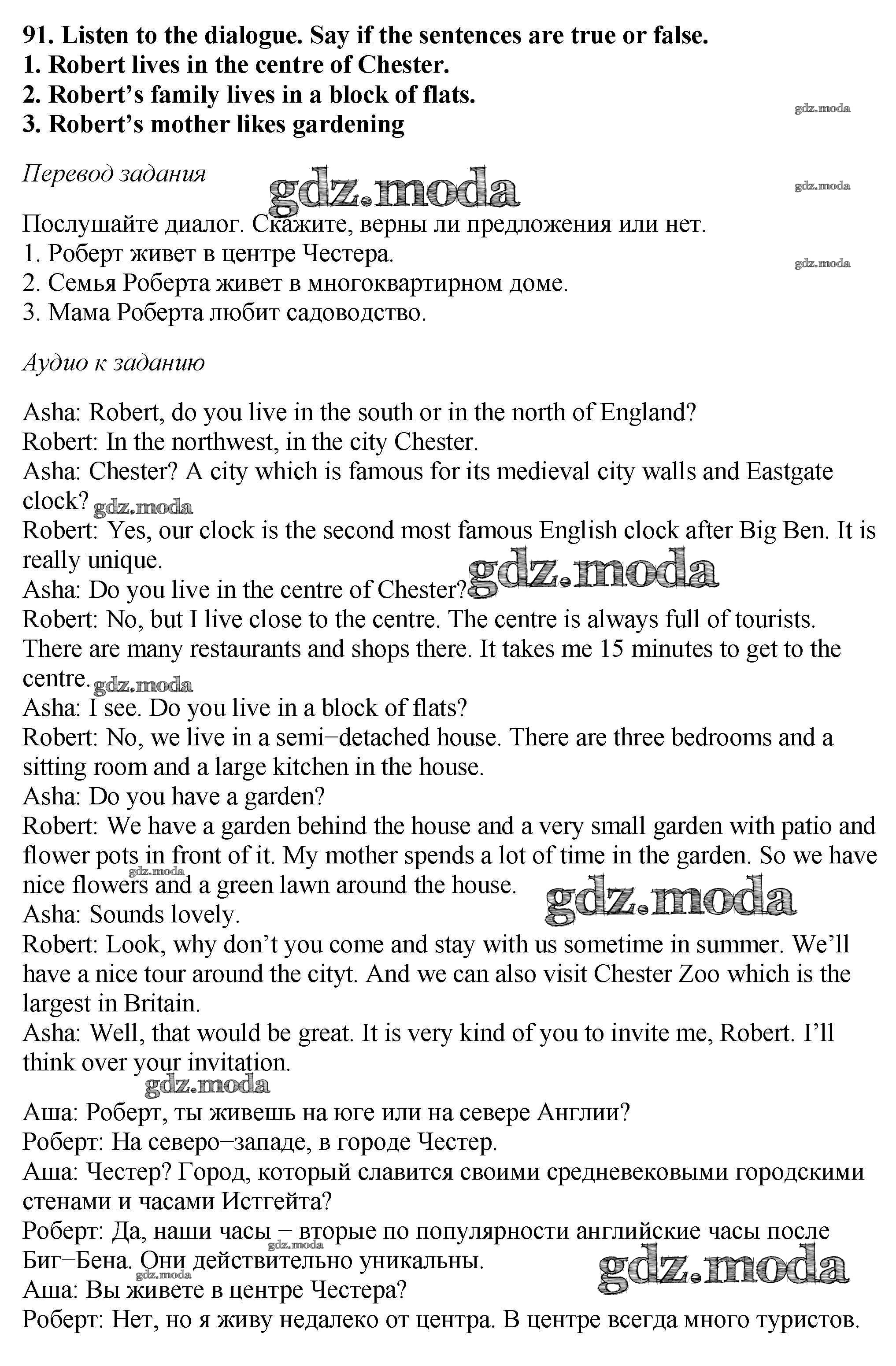 ОТВЕТ на задание № 91 Учебник по Английскому языку 6 класс Биболетова Enjoy English